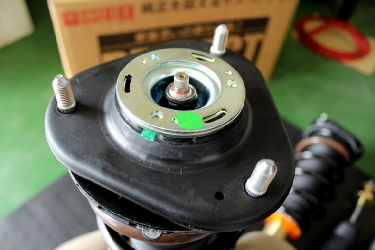 こちらの車高調は純正のアッパーマウントを流用するか、新品を付けてもらうか選択ができます。