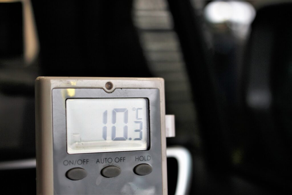 施工前のエアコン温度を測定してみると10.3℃。