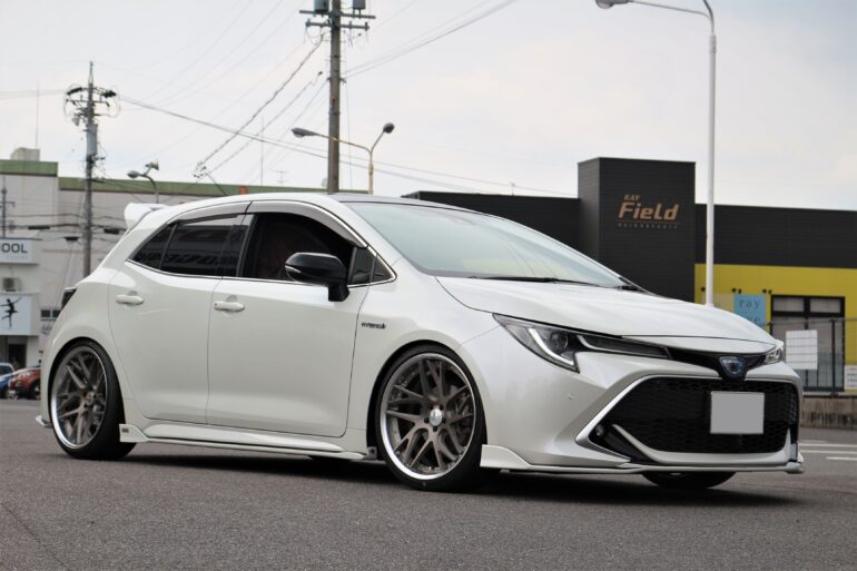 ワークランベックLM1をカローラスポーツハイブリッドに装着。車高調ローダウンで低めにセッティング