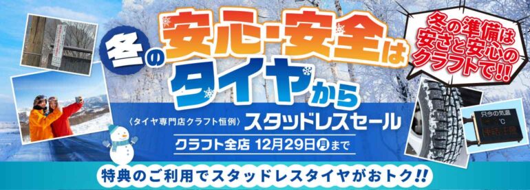 詳細ブログ 冬の安心・安全はタイヤから|スタッドレスタイヤセール開催!|冬の準備は安さと安心のクラフトで! |