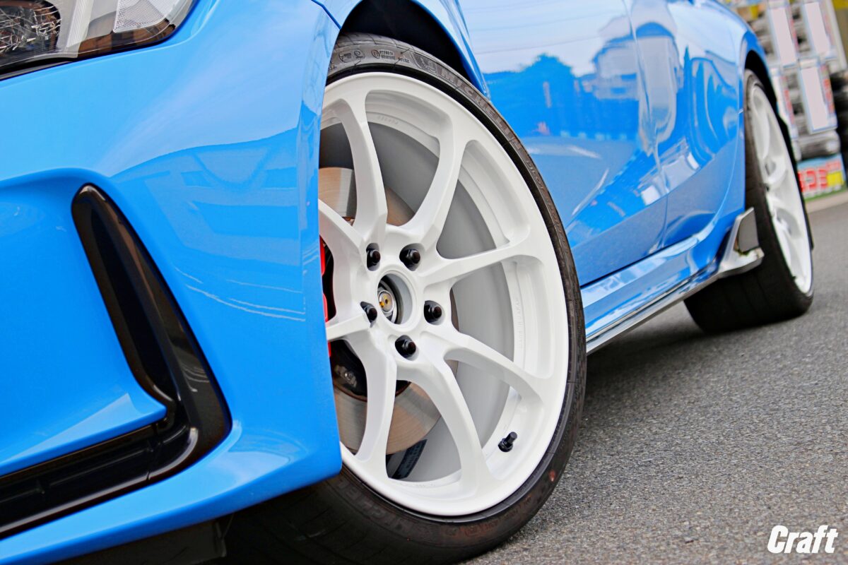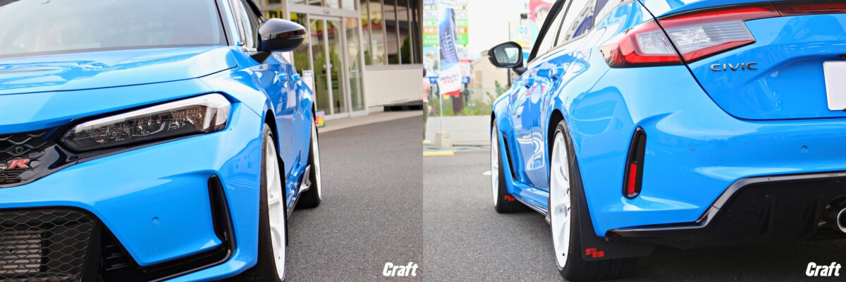 ■FL5 シビックタイプR にBBS。265/35R18のディレッツァと組み合わせツライチ フィットメント! シビック=クラフト鈴鹿店。 スズカサーキットやホンダ工場も近い土地柄故?この図式も間違いではなく、シビックのご来店が続くことがございます。 FL5 シビックタイプRも例外ではなく、納車前からのカスタムご相談をいただく機会も( *´艸`) 本日の更新では、FL5シビックタイプRへNEWセット装着の様子をお届けいたします。 お世話になっております。クラフト鈴鹿店です。 レーシングブルー・パールのタイプRが本日の主役。 タイプRと言えば、チャンピオンシップホワイトのイメージが強めですが、 ビビットなカラーリングも走りのクルマらしさを表現してくれています。 走りのクルマならばフットワーク面をアップデートし魅せるのも一つ。 選んでいただいたのがコチラのアイテム… ■BBS RI-A 国内最高峰ツーリングカーレースSUPER GTで実践投入されているホイールと 同一の思想、造形で造られている一品。 ハード走行時でもタイヤとホイールの空転を抑制するアンチスリップペイント加工も施されるなど 走りに振ったBBSなんですよね。FL5向けサイズも勿論ラインナップされています。 FL5シビックタイプRの純正ホイールサイズは、9.5J・19インチ。 社外ホイール顔負けな攻めたサイズ故、アフター交換の場合でもナローにするのは…ですよね? ということで、純正同J数の9.5Jを選択。 RI-Aの18インチ1本あたり重量は7.7kg~ととても軽量。 エアバルブも他モデルですと金属製バルブを採用しているのですが、RI-Aではゴムバルブを採用。 1gでも軽く。モータースポーツ直系モデル故の拘り仕様とも言えますね。 標準搭載されているブレンボキットと軽量BBSで走行性能のアップデートも間違いなしでしょう(*^^)v WHEEL:BBS RI-A 9.5J-18インチ COLOR:ダイヤモンドブラック(DB) TIRE:ダンロップ ディレッツァDZZ3 SIZE:265/35R18 元々、ミシュランPS4Sが装着されているFL5。 標準搭載銘柄をベースに選んでいただいた銘柄は"ダンロップ ディレッツァDZZ3"。 LAPタイム短縮を追求したハイグリップスポーツタイヤです。 ハイパワーなVTECターボのパワーを余すことなく路面に伝える上で間違いのないチョイスであり、 四角いショルダーシルエットも人気の秘訣。 【side view】 標準19インチ→BBS RI-A 18インチへ。 FK8の時も18インチへのインチダウン+ハイグリップタイヤを組み合わせたカスタムが流行しました。 FL5でもその流れから走りに振ったカスタムが流行しそうですね。 絞り込まれたリアフェンダー下部からチラッと見えるタイヤパターンがスポーツカーらしさを強調。 GAPスタイルとツライチスタイルでFL5が完成です! バネ下重量減からくるアシの動きの良さとハイグリップタイヤの恩恵を 是非感じてみてくださいネ。 この度のご用命誠にありがとうございました! また、増し締めや空気圧点検等でもお待ちしておりますので、 お気軽にお声がけください。 BBSホイールのお問い合わせも当店まで。   それでは素敵なSPORTS CAR LIFEを!   クラフト鈴鹿店でした! 【2024年4月6日(土)~4月14日(日)WORK新作ホイール展示会を開催します!】