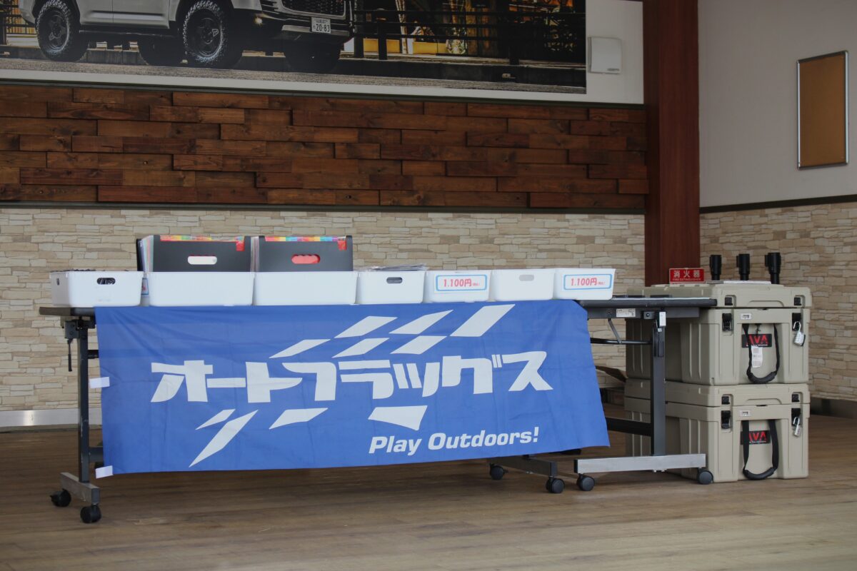 オートフラッグスブースでは、イベント恒例の1000円均一を行っております。