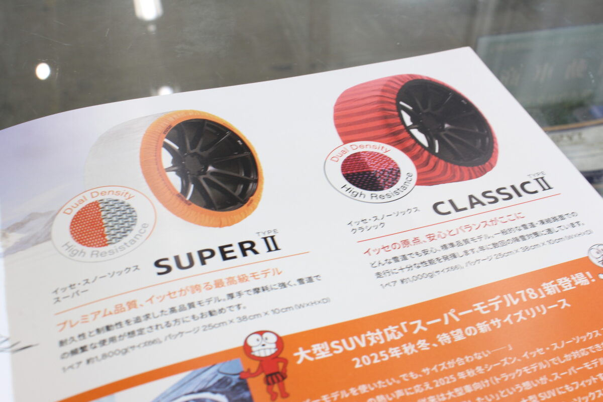 ISSE スノーソックスシリーズは標準タイプの“クラシックⅡ”、プレミアム品質の“スーパーⅡ”の2種類