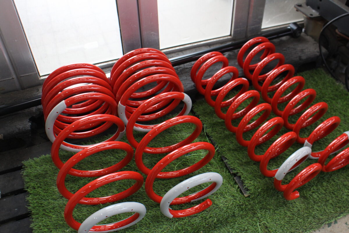 リフトアップコイルの決定版、タナベ UP210を装着しましたフロント+35~+40mm・リア+5~10mmで気になる前下がり解消に貢献