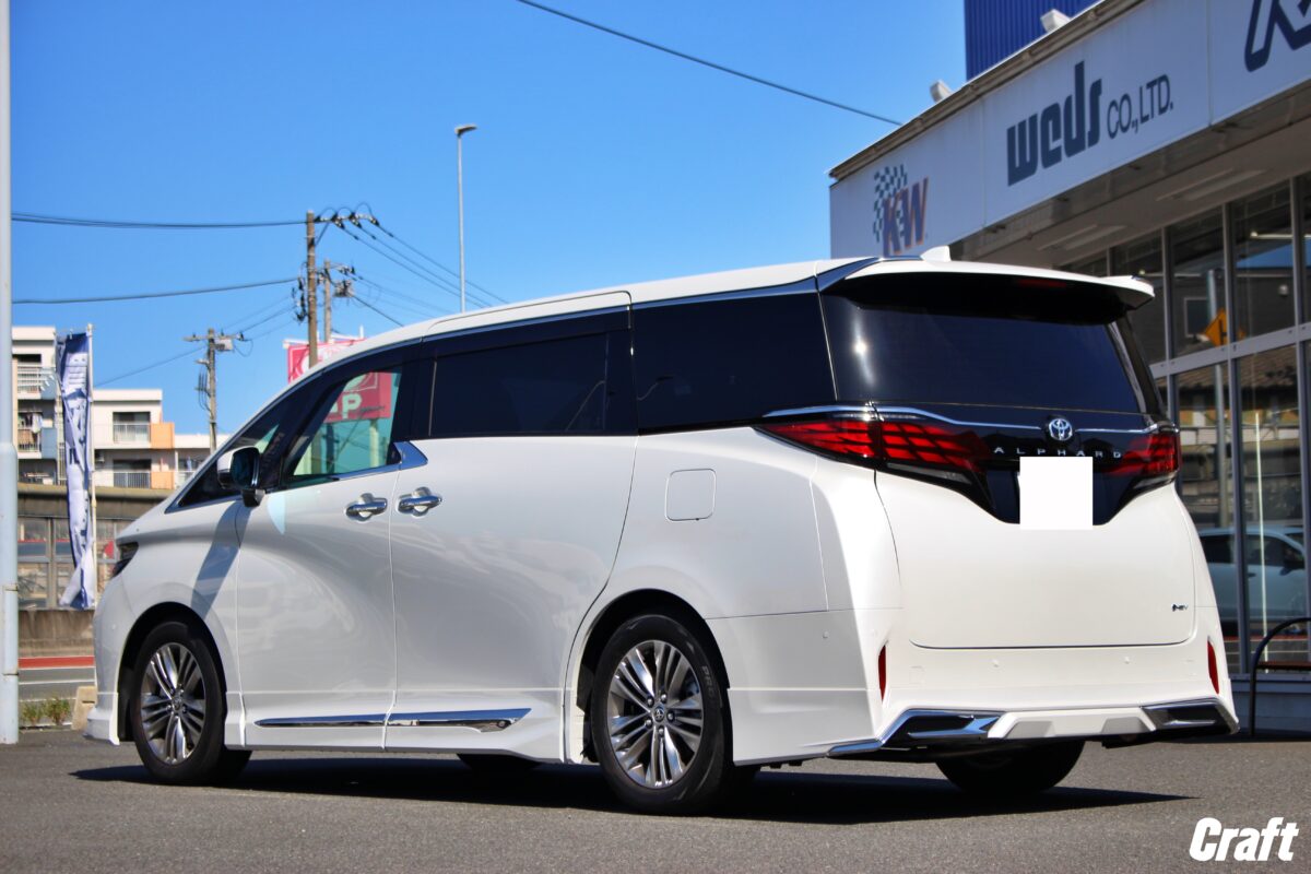 ■40アルファード×WORK シュヴァート ブルネン   いつもありがとうございます!!クラフト厚木店・のりかずです。   本日ご紹介するのはO様・40アルファード。   今回はダウンスプリングに加えタイヤ・ホイールも一緒に交換させていただきましたよ👍   ダウンスプリングで検討中のオーナー様はぜひ参考にしてみてくださいね~     今回取り付けていくダウンスプリングは「RSR Ti2000ダウン」。   ダウン量は「Fr:-35mm~-40mm Rr:-30mm~-35mm」となっています   RSRのダウンスプリングには「ハーフダウン」と言ったダウン量が控えめなダウンスプリングもありますよ✨     こちらは施工前の1枚。   今回の40アルファードはハイブリッドの2WD・AAHH40W。     そしてこちらが施工後の1枚。   車高は下げたいけど、大きくは下げたくないというのがO様のご希望。   と言うのも写真をご覧いただいてもわかる通り、エアロを装着されているクルマなので、下げすぎてしまうと場所によっては擦ってしまう可能性があるので程よく下げれるダウンスプリングをチョイスいたしました。   ただ、車高調とは違って車高をもう少し下げたいと思っても下げる事ができないので、ご注意ください。     O様からご注文いただいたのは「WORK シュヴァート ブルネン」。   サイズはダウン量とO様のご要望に合わせて「9.0J-21インチ」をチョイス。   今回のホイールは2ピースホイールなので「実車計測」をしてホイールサイズを決めていく事が多いのですが、今回は1回の来店ですべての取り付けを完了したいと言うご要望にお応えして、ホイールサイズは僕のデータをもとに選ばせていただきました。   40アルファード・ヴェルファイアのご相談も多い当店なので事前にデータはしっかり取らさせていただいています!!   安全サイズから攻めたサイズまでデータは取れているので、今回のご要望のような1度で終わらせたいと言いった事も可能なのでその際は店頭のスタッフにご相談くださいね~     出ヅラの仕上がりはこんな感じ。   左右の出ヅラはクルマの個体によって多少変わってきますが、それでも出ヅラはいい感じですよね♪   今回取り付けたサイズは少し攻めたサイズ。   前後同サイズのホイールを装着いたしましたが、リアの方はもう少し出せるので、前後サイズ違いでもアリですよ✨   あとは、フロントに「キャンバーボルト」を装着することによってリアに合わせたホイールサイズをフロントにも装着することができるので出ヅラ重視がお好みの方は「キャンバーボルト」をオススメしますよ✨   ■before   ■after   それでは沢山のご相談お待ちしておりま~す✨     O様この度はRAV4に引き続きクラフトをご利用いただきありがとうございました!!   車高がちょうどよく仕上がってよかったです!!   そして気になっていた出ヅラですが、ちょうどよく収まってくれましたよ👍   また、クルマのカスタム等ありましたらクラフトにご相談くださいね♪   それではまたのご利用お待ちしておりま~す!!   管理番号:0412510171006