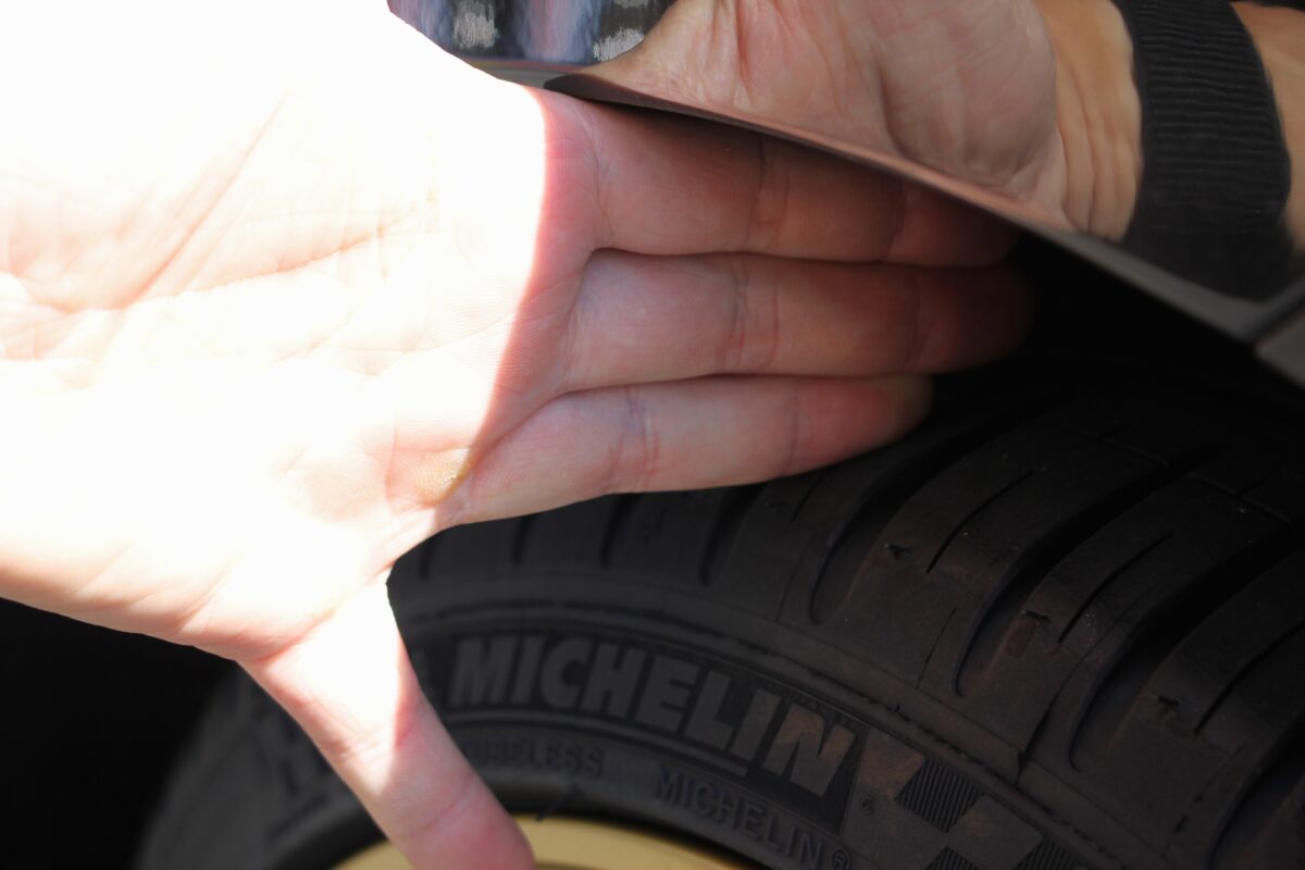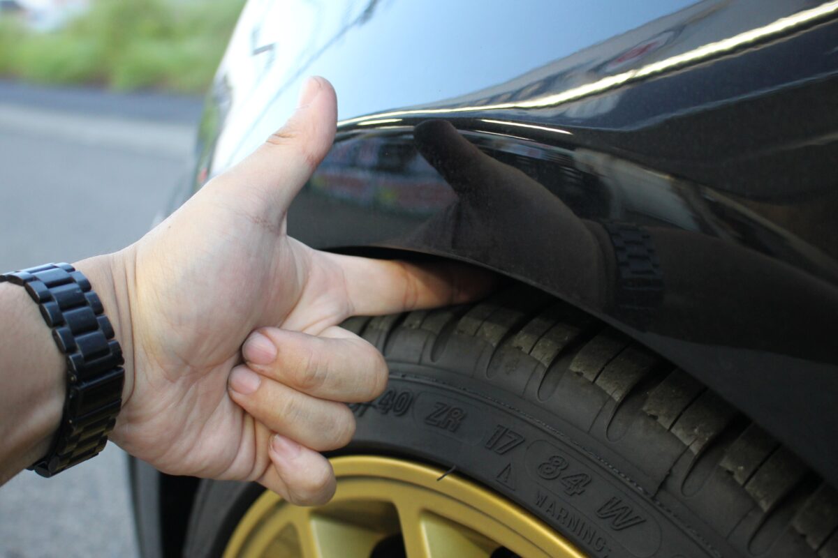 純正状態では指3本が楽に入るクリアランスになっていて、フロントより広めなので悪目立ちしてしまいます💦