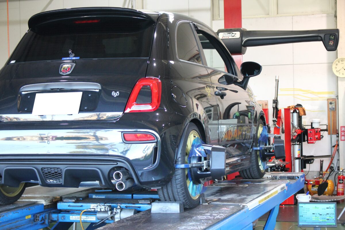 ■ローダウン+キャンバーシムはセットで!?   新年明けましておめでとうございます! 本日1月3日(日)10:00より営業開始となります。 今年もどうぞよろしくお願いいたします(^^) 新年最初のブログはアバルトのカスタムからスタートです。 珍しいメタリックレッドなアバルト様。 画像はこの後、ご紹介するパーツを全て装着後です。 とてもバランス良く仕上がりました(^^) ↑装着前↑ オーナーさんが気になっていたのは前後バランス。 定番のリアのフェンダークリアランスを特に気にされていました。 そこで車高調、その他もろもろをオーダー! ・アイバッハ プロストリートS ・スリーハンドレッド スタビライザーリンクロッド ・スリーハンドレッド リバウンドストップラバー ・ASSO キャンバーシム Type HP ・純正アッパーマウント ・アッパーカバー 早速取付です。 しなやかな乗り味が好評なアイバッハプロストリートS 今回はアバルト専用品番にて取付。 フロントのバネレートが、共通品番と違い少しレートが高めで どちらが良いかは店頭でぜひご相談ください(^^) ご一緒にASSOキャンバーシム Type HPも装着。 Type HPはキャンバーをつけるだけでなく アバルト特有のローダウン時に発生する、リア過剰トーインも補正してくれます。 リアの接地感やトラクションが向上し、より気持ちよく走れます(^^) さらにさらに、スリーハンドレッドパーツを装着。 ・リバウンドストップラバー ・スタビライザーリンク こちらも足回りの性能をより向上させてくれるパーツとなります。 特にアッパー部分の隙間は気になるますよね(^^;  次に引っ込んでしまったタイヤホイールのデヅラ調整です。 リフトにて水平を出し、実車計測。 スペーサーの厚みをご相談させて頂きます。 どうせなら気に入ったツラにしたいですよね。 リアの完成はこちら。 程よいツラでオーナーさんにも気に入って頂けました(^^) キャンバーシム装着による、このふんばり感もたまりませんよね! もちろんフロントも調整。 数mmの世界ですが、満足感が違います。 3mmでこれだけ変わります(^^) もちろんアライメントも、しっかり測定・調整を行います。 試走を行えば完成です。 極端なリアのリフト感が減り、とてもバランスが良くなりました。 帰り道は今までと、まったく違った乗り味で感動して頂けると思います(^^) オーナーさま、ご依頼ありがとうございました!