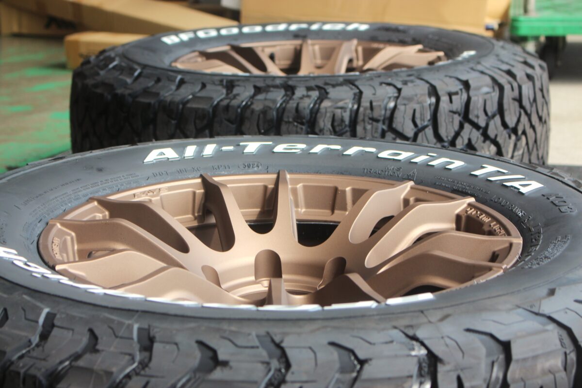 アメリカのタイヤメーカーBFグッドリッチのオールテレーンタイヤT/A KO3を組み合わせます。前モデルのKO2から車内静粛性とウェット性能が向上し、オフロード性能も見直しを実施。