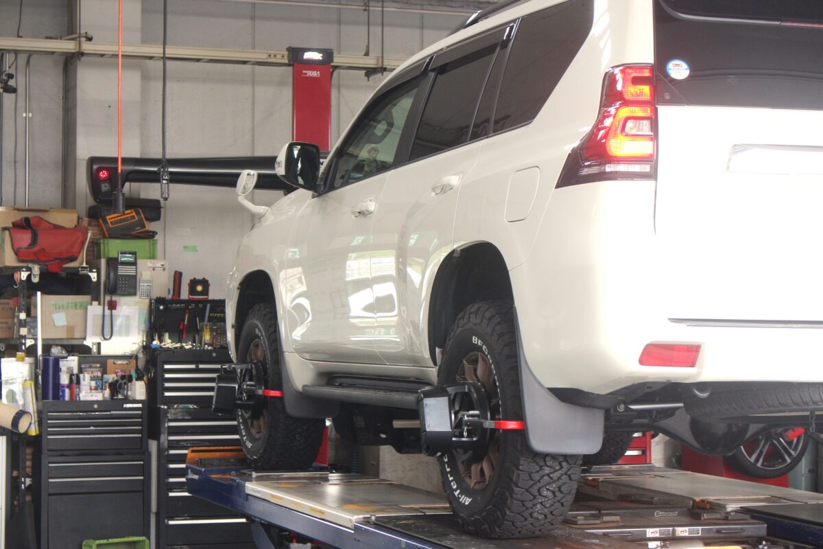 150プラドはフロントのキャンバー・キャスター・トゥーの左右計6カ所が調整可能な車。