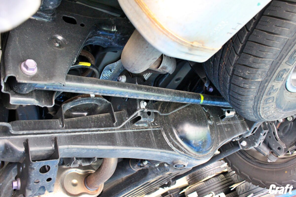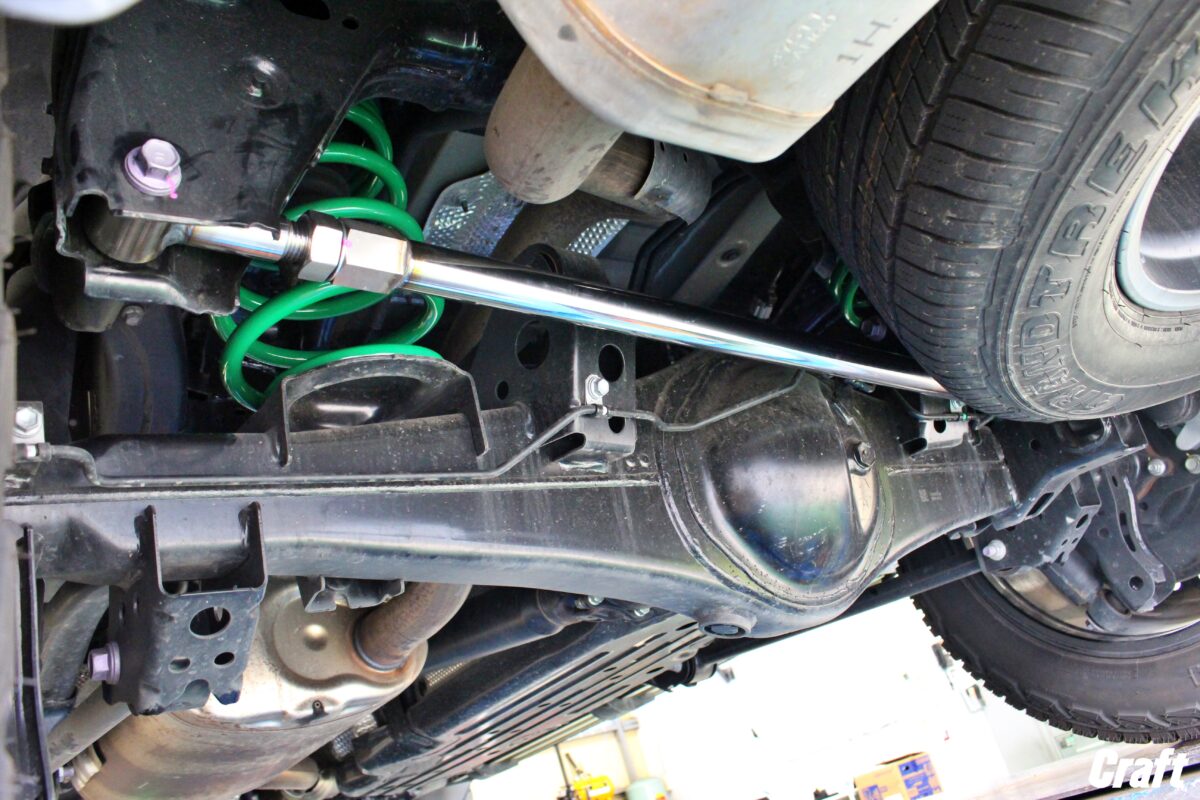 今回のようにリフトアップを行うと純正のラテラルロッドでは長さが足らず、車軸がズレてしまいます。