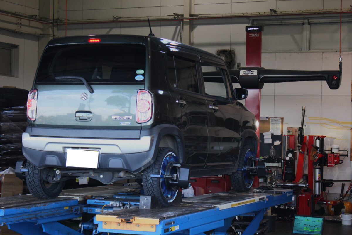 サス交換を施工した際、タイヤの偏摩耗や車両トラブルを避けるためにアライメントの調整は必須項目です!!