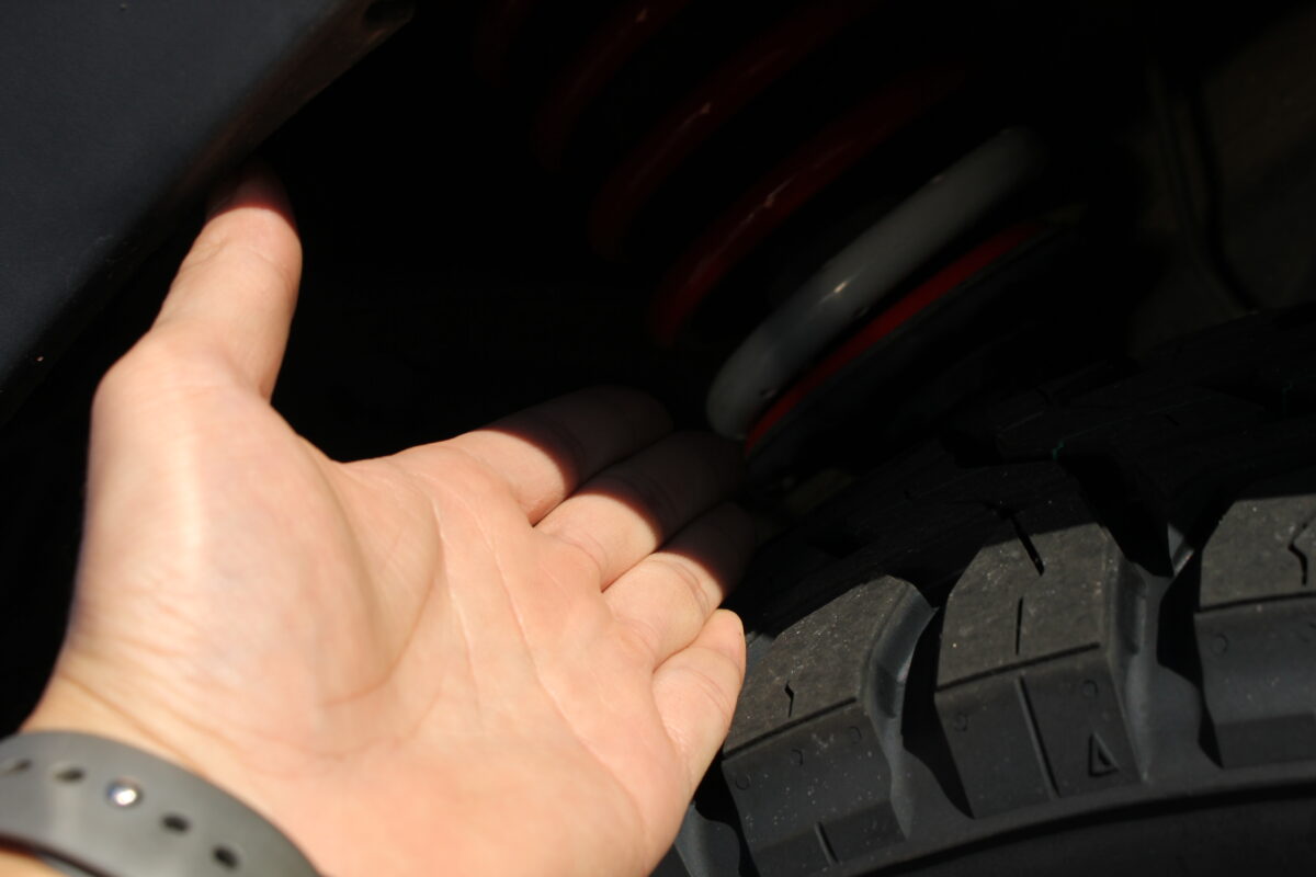 というわけで、ブロックタイヤの装着と車高をアゲていきますよ🔥