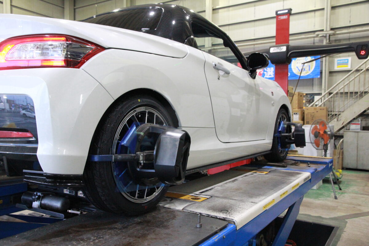 全てのアイテムを装着し終えたら、4輪アライメント調整へ。