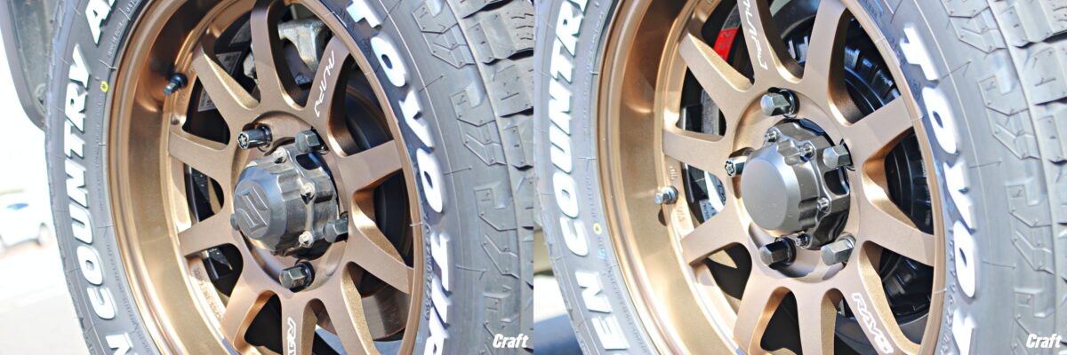 ホイールの色味ですが、少しザラつきのある肌感、そして深みのある色味で人気のカラーとなっています。