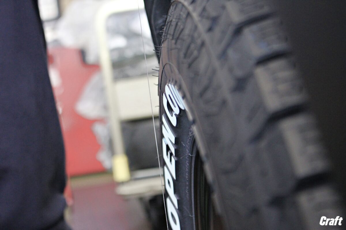 本日装着しているタイヤ銘柄は 「 トーヨータイヤ オープンカントリー AT3 」 となります。