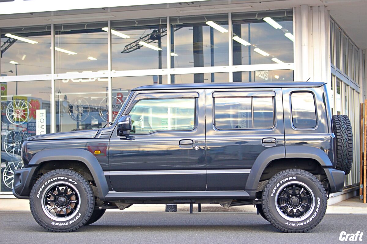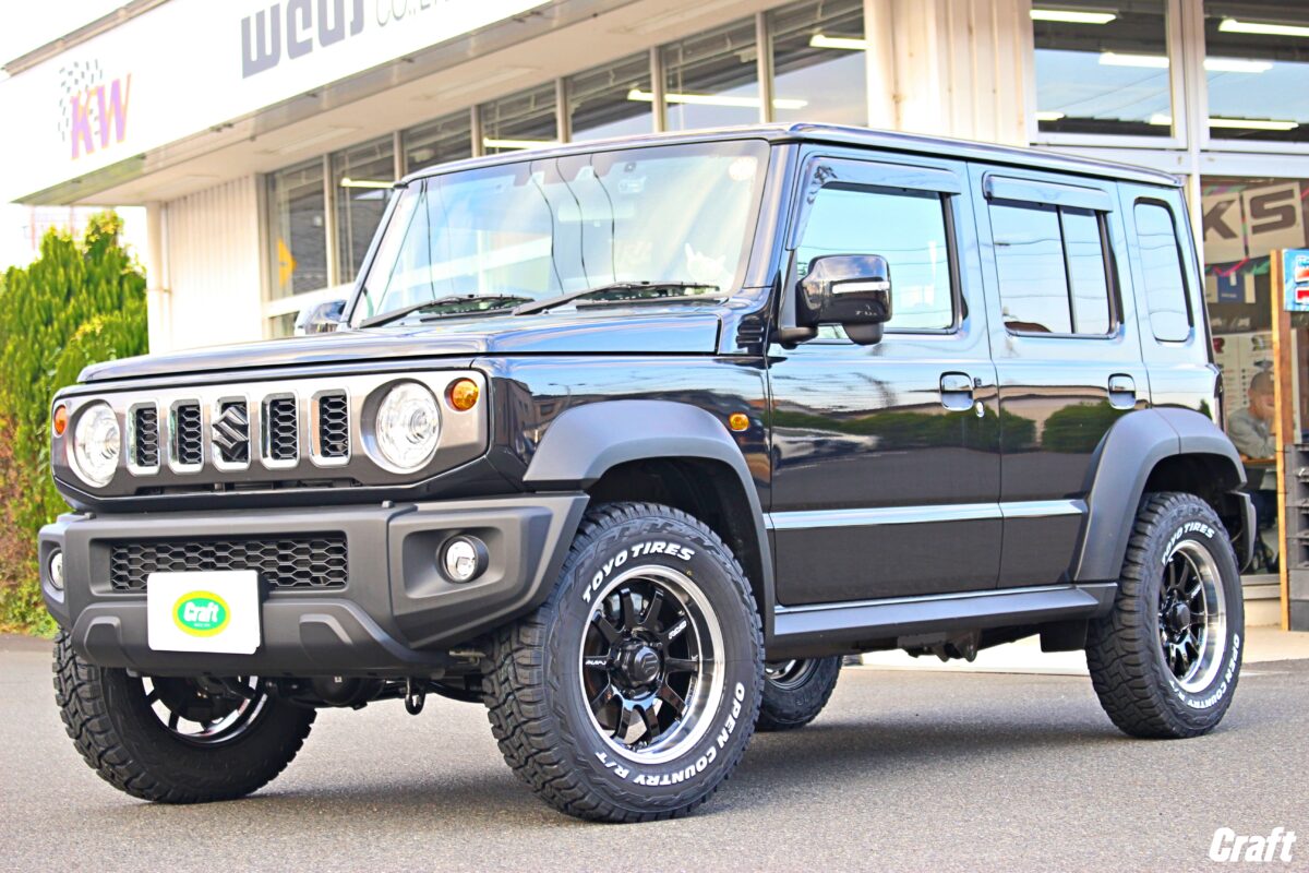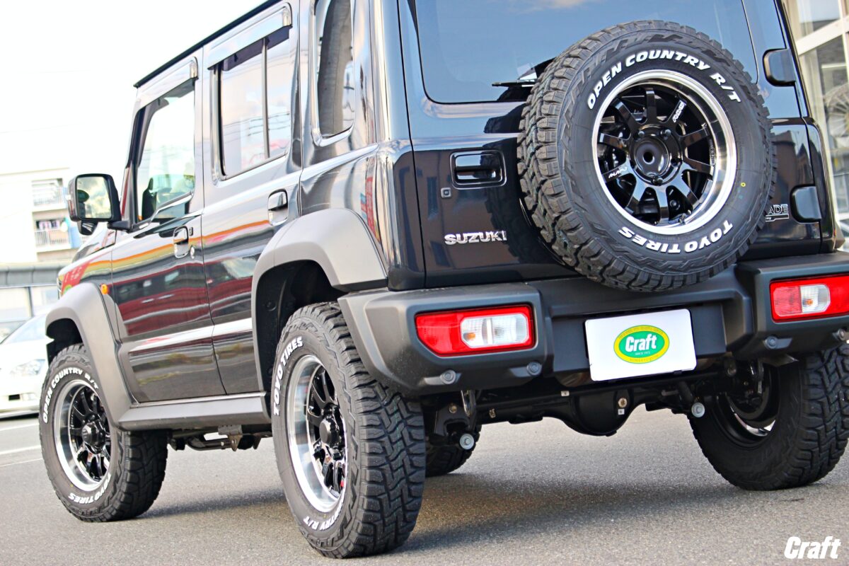 ■ジムニーノマド・215/70-16で出ヅラがGOOD!!   いつもありがとうございます!!クラフト厚木店・のりかずです。   本日ご紹介するのはS様・ジムニーノマド。   タイヤ・ホイールを交換させていただきましたよ~     ご購入いただいたホイールは「エクストリームJ XJ08」。   こちらのホイール「エクストリームJ」の新作ホイールでアメリカンなデザインが特徴的です。   そしてリムにはビードロックリング風なデザインを採用しているのでよりアメリカンを感じさせてくれます!   何よりもホイールカラーがアメリカンですよね!!   国内メーカーが展開するホイールの中で今回のようなホイールカラーってかなり少な目。   アメリカンな感じに仕上げたいって方は「エクストリームJシリーズ」をご覧なってみてはいかがでしょうか。   そして、ホイールに組み合わせたタイヤは「トーヨー オープンカントリーATⅢ」。   ジムニーシエラやノマドにご注文を多くいただくタイヤとなります!   その理由としては全塗りのホワイトレター且つスノーフレークマーク付き、ロードノイズや乗り味が優しめなのが人気の理由。   凹凸感は控えめではありますがその分ロードノイズや乗り味がいいと好評なんですよね♪     出ヅラはこんな感じ。   今回取り付けたサイズは以下の通り   ホイール:6.0-16   タイヤ:215/70-16   上記の写真をご覧いただいてもわかる通り、今回のホイールサイズと215/70-16を組み合わせるとツライチ状態。   225/70-16などの太いサイズを装着したいとご相談いただくこともありますが、今回のホイールのようなサイズの組み合わせだと、追加でフェンダーを付けることをおすすめします。   ホイールサイズによっては追加フェンダーはいらない場合もありますので、クラフトにご相談くださいね♪     今回オーダーいただいたのは背面含めて5本。   背面も一緒に交換すると統一感が出るので、かなりおすすめ!!     今回取り付けたタイヤ・ホイール在庫がありすぐ取り付けができました。   しかし、タイヤのオープンカントリーATⅢは人気が高く今からメーカーにオーダーしても納期が出ていません。。   という事はいつ取り付けできるかがわからない状態。   当店に20本もあった在庫もすでに在庫切れ。   オープンカントリーATⅢにしたいと思っている方は早めにご注文いただき生産枠をGETしましょう!!   メーカーにオーダーしとかないといつまで経っても手に入りませんからね🔥   それではご相談お待ちしておりまーす!!     S様この度はクラフトをご利用いただきありがとうございました!!!   早めにご注文いただいたことによってすぐ取り付けができました!!!   225/70-16がご希望でしたが、215/70-16でも出ヅラはパツパツでしたよね(笑)   リフトアップ・マフラーオススメがありましたらご連絡させていただきますのでよろしくお願いいたします!!   レクサスLMのカスタムもお待ちしておりますよ!!   それではジムニーライフをお楽しみください!!   管理番号:0412510201003