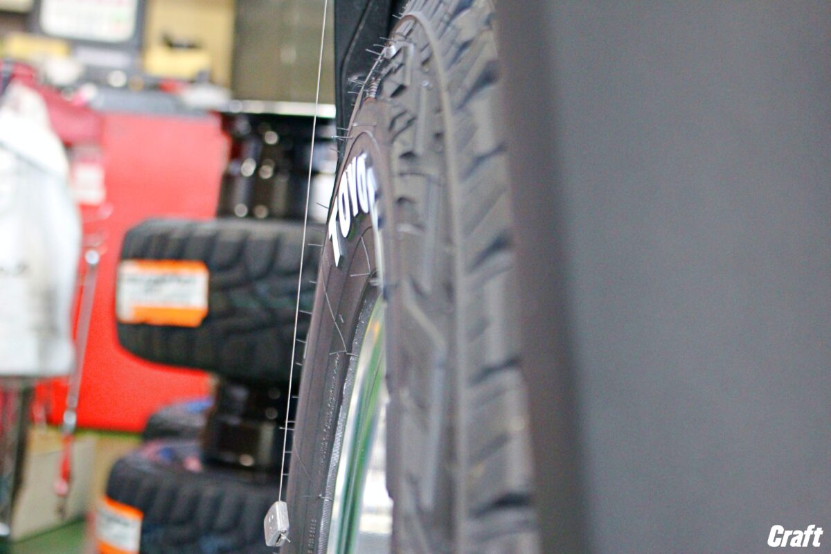 いかがでしょう、さっきまでバンパー下部と干渉していたタイヤですが、クリアランスが確保出来ていますよね!? 👀