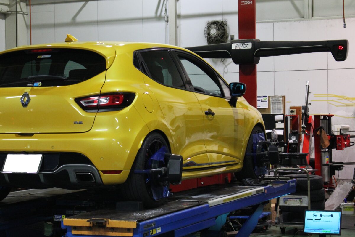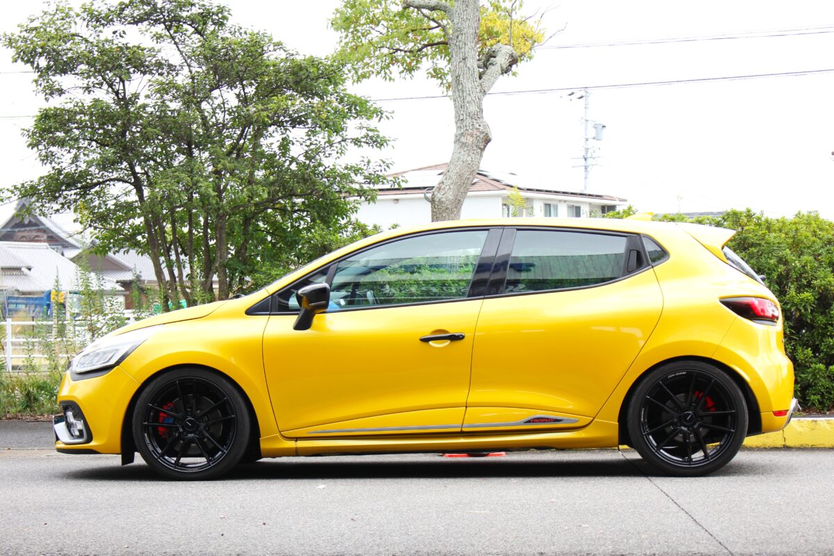 「ルーテシアRS」よりも20㎜ほど車高が低い「ルーテシアRSトロフィー」へ車高調装着でさらに低くカスタム済みのお客様