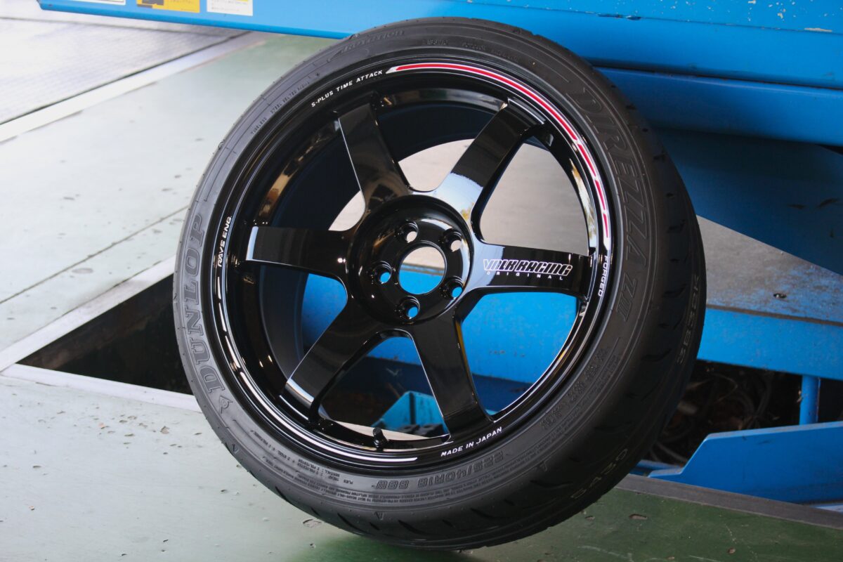 GRロゴの黒/赤に呼応するように光るTE37SAGA S-Plus タイムアタックエディション。