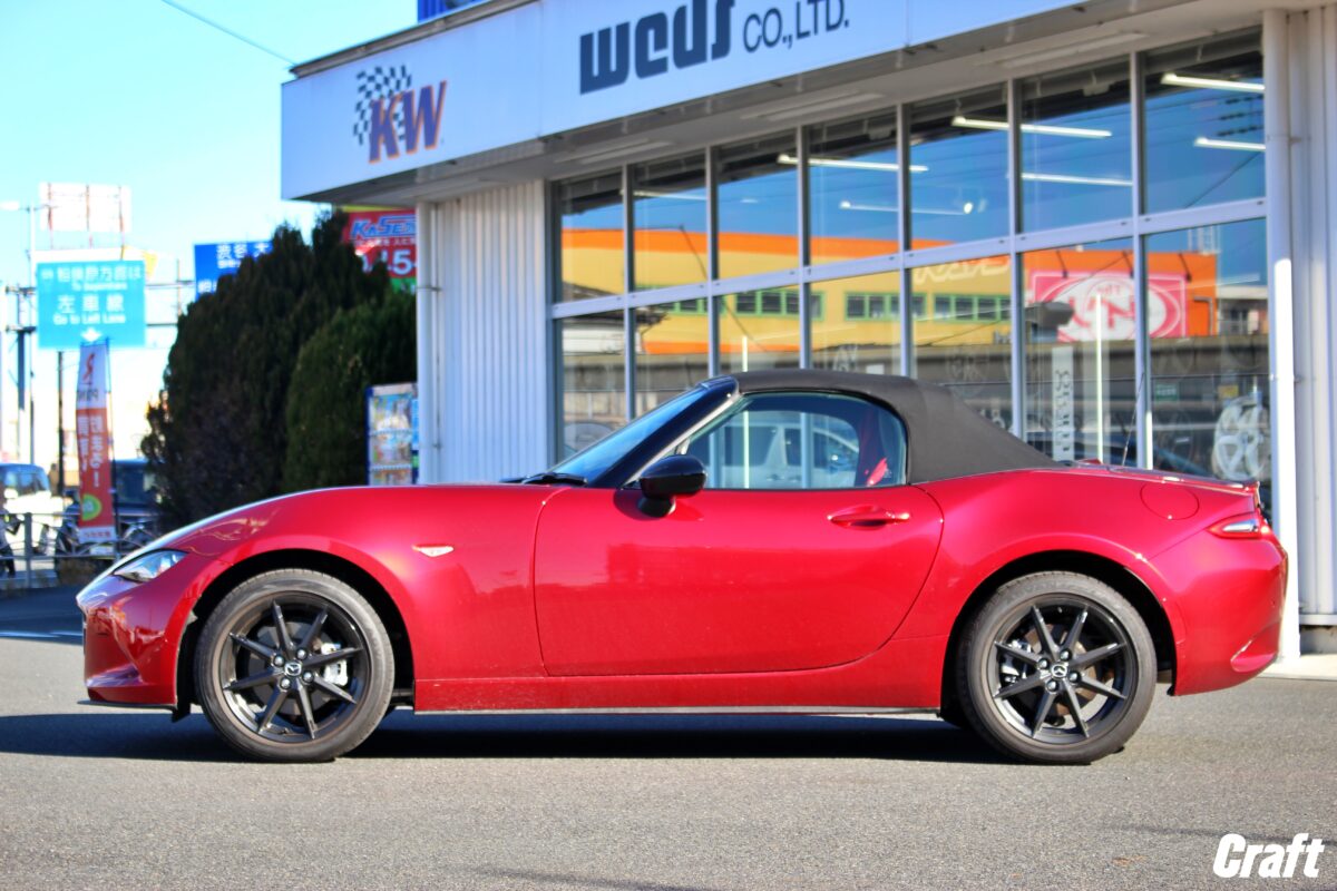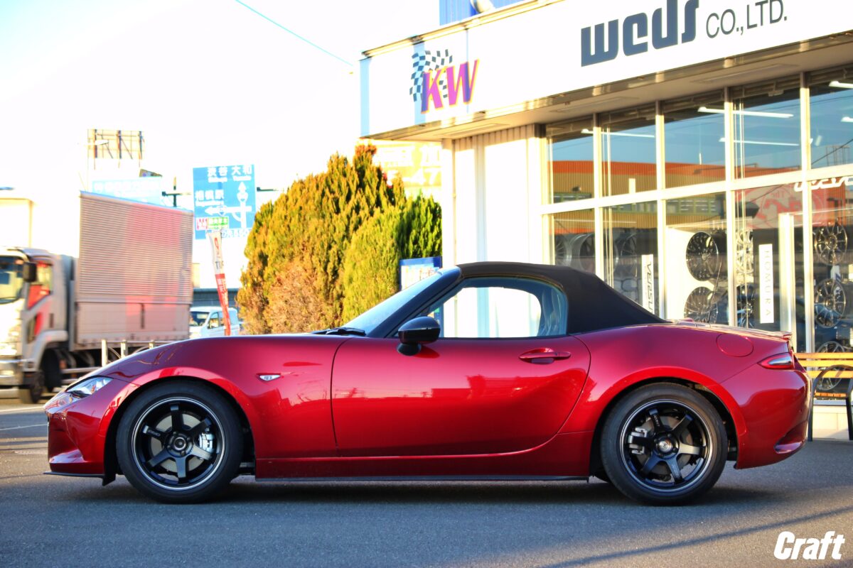 ■RAYSボルクレーシングTE37ソニック・「フェイス3」がやはりかっこいいね✨✨   いつもありがとうございます!!クラフト厚木店・のりかずです!   本日はA様・NDロードスターRFをご紹介していきます!   A様からは車高調からタイヤ・ホイールをお任せいただきました♪     ご購入いただいた車高調は「TEIN フレックスZ」。   そしてオプションパーツの「フレキシブルコントローラー」も一緒に取り付けていきますよ!   このオプションパーツを取り付けることによってリヤの減衰力調整がかなりやり易くなるので是非とも取り付けていただきたいパーツです!     続いてご購入いただいたホイールは「RAYS ボルクレーシング TE37ソニック」です。   今も尚人気が高いホイールメーカー「RAYS」。   軽量且つ剛性が高いTE37シリーズはスポーツカーにとても人気が高いですよね!   特にNDロードスターはTE37の装着率はかなり高めの印象です!   僕が思うにTE37は選べるサイズラインナップが豊富なのでクルマの仕様に合わせて選ぶことができるのが人気の1つなのではないかと思っています。   ノーマル車高に合わせたサイズから少しローダウンしたサイズ、そしてクルマ側でしっかり調整したチューナーサイズなどなど。。     そして他にも人気な理由は上記のような「コンケイブフェイス」の設定があるからではないでしょうか!?   街中を走っているロードスターだったり、ミーティング等へ行くと沢山の方がTE37を装着しているのを見ますよね?   その多くが上記の写真に近いコンケイブをしているかと思います。   選んだサイズがそのコンケイブだったと言う意見もあるとは思いますが、中には深いコンケイブに拘って求めるオーナー様もいます。   このコンケイブが深いとクルマを見た時の印象が大きく変わるので出ヅラと同じく拘るオーナー様も多いんですよ!   しかしこのコンケイブフェイスは自由に選べれるわけではありません、、実は選ぶホイールサイズによって決まってしまうのでご注意くださいね!!   そして今回取り付けていくコンケイブは3番目にコンケイブが強い「フェイス3」でセッティングを行っていきます!     こちらは施工する前の一枚。     そしてこちらが施工後となります。   今回のダウン量は約-25mm。       タイヤとフェンダーの隙間は施工後で約指2本ぐらいとなります!   あまり下げたくないんだよなーと思っている方はこのぐらいの車高はいかがでしょうか!     そして出ヅラの仕上がりはこんな感じ。   アライメント作業でキャンバー角を調整して程よい出ヅラへ調整させていただきました♪   皆様の愛車もアライメント調整をして出ヅラを調整してみてはいかがでしょうか!   それではご相談お待ちしておりまーす!!     A様この度はクラフトをご利用いただきありがとうございました!!   もちろん純正時と比べると印象もだいぶ変わっていますが、キャンバー角を調整しながらセッティングした出ヅラはいかがでしょうか!!   そして「フェイス3」のコンケイブもなかなかの落ち込み具合になっていますよね♪   乗り味を変更したい場合はオプションパーツの「フレキシブルコントローラー」を活用くださいね~   それではまたのご相談お待ちしております!!   管理番号:10412511221008