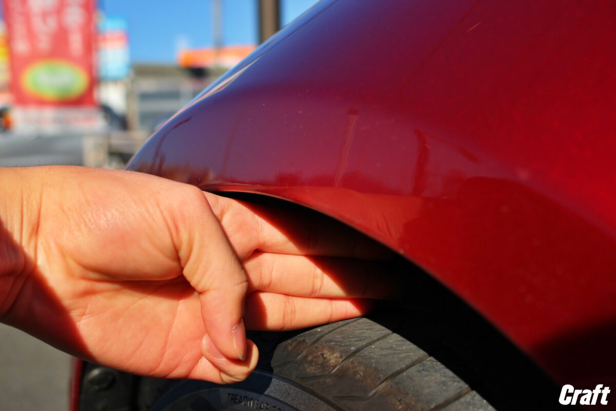 施工前の純正車高だと上記のように指が3本余裕で入ってしまいます。。。