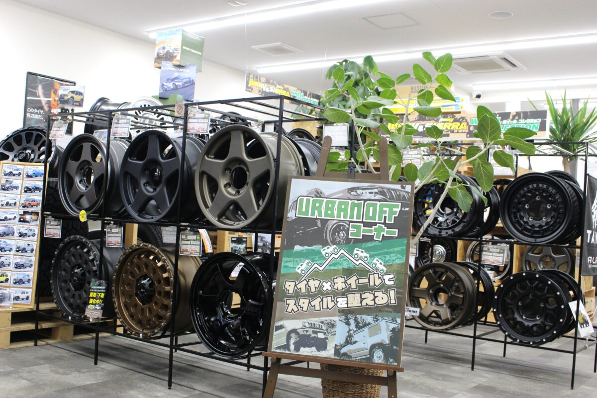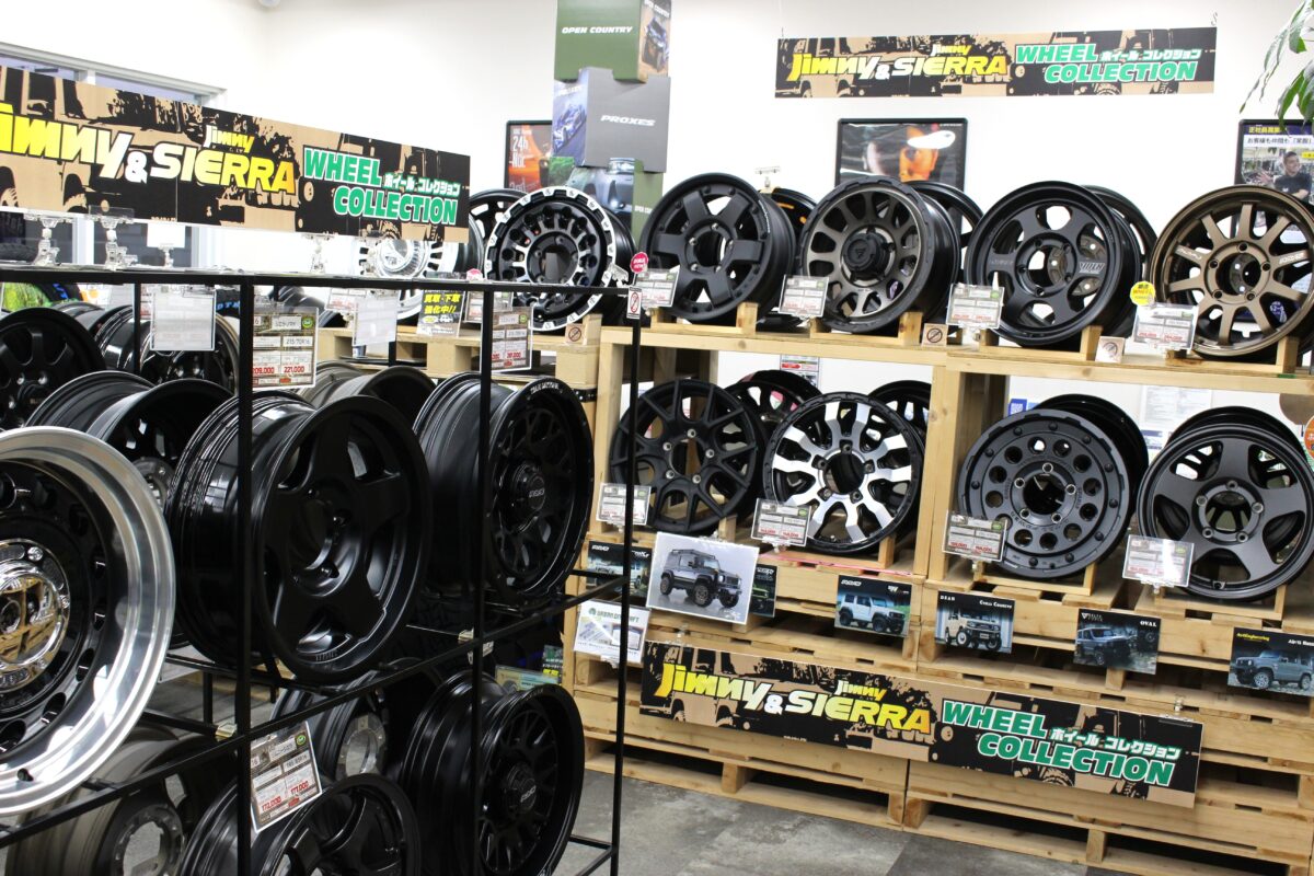 ジムニー・シエラ・ノマドに装着可能なホイールも大量展示。