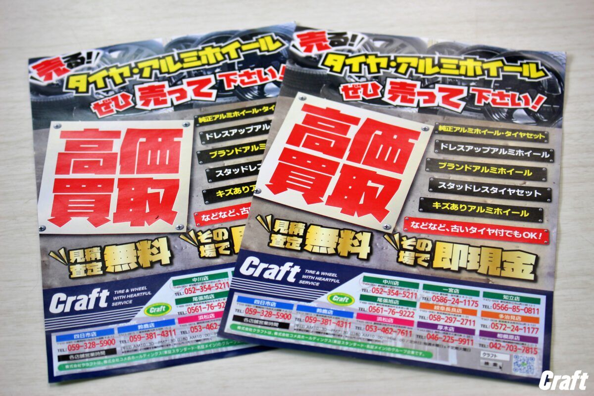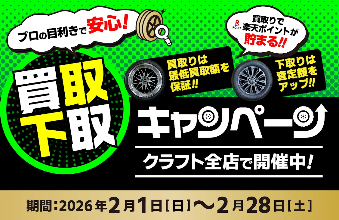 クラフト全店にて新しいアルミホイールへ買い換えの方は、不要なホイールの下取サービスをぜひご利用ください!