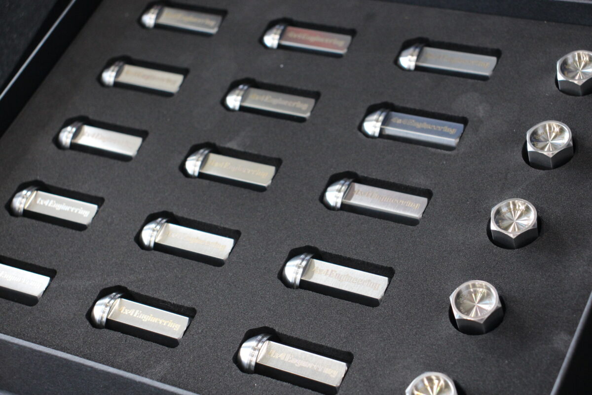 ナットにも拘っております!!!!重箱に包まれて登場したナットは、スチールやアルミには出せない、チタン特有の深く鈍い輝きの「チタニウムラグナット」