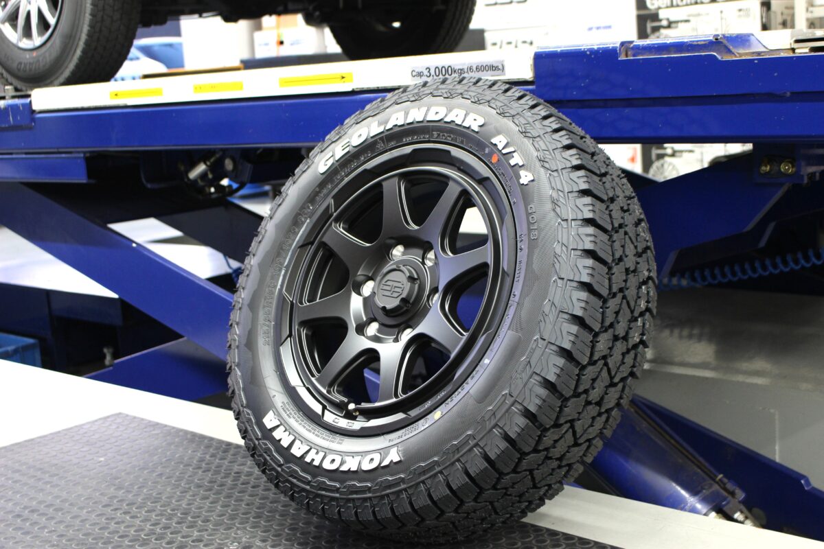 ■200系ハイエースの最近のアルミホイール事情 今ある車種に人気のオフロードタイヤは 「ヨコハマ ジオランダーX-AT G016」 マッドテレーンのようなアグレッシブな見た目に 加えて、オンロードの乗り心地も快適で申し分なし。 ホワイトレターもお洒落となれば、やっぱり指定い ただくことが多いタイヤ。 ある車種とは、デビューから何十年も経った今でもカスタム として人気の高い「200系ハイエース」 多種多様なカスタムで、各メーカーからも未だにNEWパーツ がリリースされるほど。 さて、本日はタイヤホイールをクラフト四日市店で 交換させていただきますが、人気の「ジオランダーX-AT」に 組み合わせるアルミはこちらも人気の「RAYS」から。 「TEAM DAYTONA M9+」 ビードロックテイストのデザインと9交点メッシュが美しい デザインはハイエースにみならず、クロカン、SUVにも人気 の高いモデル。 軽量化にも優れ、走ってもよし。と機能面でも優秀なアルミ。 まさかの連日で同じ車両で同じアルミのご紹介となりました。 それだけ、「ハイエース」にアルミホイールもタイヤも人気と いうことですね。 最近での「ハイエース」のアルミホイールカスタム事情と しては、アウトドアの流れからオフロードベースに楽しむ方 が増えております。 もちろん、全てキャンプに使用する目的ではないとしても その流行りは働くハイエースにも浸透! 【BEFORE】 メーカー純正オリジナルは15インチ 【AFTER】 純正から1インチアップで、インパクト抜群。 タイヤのアグレッジブな印象もGOOD! ■SPEC WHEEL:RAYS TEAM DAYTONA M9+ SIZE:6.5J-16インチ 6H139 COLOR:BOJ(セミグロスブラック) TIRE:ヨコハマ ジオランダーX-AT G016 SIZE:215/65R16 109/107Q X-AT G016の「215/65R16」サイズはC規格となるので、 「ハイエース」や「キャラバン」などライトトラック規格の 車検適合に対応している所も選択として嬉しいポイント。 という訳で、本日のクラフト四日市店ブログはここまで! 本日もありがとうございました。