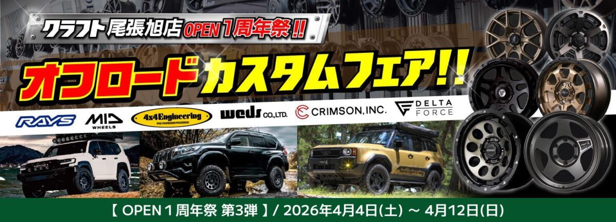 数多くのオフロードデザインホイールを手掛ける【エクストリームJ】 オーストラリア発のオフロードタイヤ【モンスタ】 こだわりアイテムでハイエースをオフロード仕様へ!!   クラフト知立店 白井です キャンプの流行によるオフロードカスタマイズの波はハイエースにも!! LT規格、C規格のオフロードタイヤの拡大がさらにその波を加速させます 本日は200系ハイエースのオフロードカスタムをご紹介します☆☆   ■MLJ エクストリームJ XJ04×MONSTA RT HYBRID 長年オフロードカスタマイズを支えるホイールブランド【エクストリームJ】 今でこそオフロードデザインが増えましたが、その礎を築いたブランドと言えます 9交点メッシュの定番ディスクにピアスが別体式のビードロック調リム サテンブラックは無骨でワイルドながらもお手入れのしやすい半艶カラーリング   タイヤはオーストラリア発のタイヤブランド【MONSTA(モンスタ)】 ハイリッドパターンを採用した【RT HYBRID】は街乗りとヴィジュアルが重視できる新モデル しっかりとした迫力のある“トレッド、サイド”のブロックデザインに加えて“レイズドホワイトレター” カスタム色を強めたい場合にはホワイトレターはベターな選択です   ビードロック調をさらに本格派に引き立てるピアスは別体タイプ ドリルドでピアス風ってのはよくありますが別パーツにすることで雰囲気アップ 本物のビードロックが付いているようで無骨さが上がります ちなみに“ビードロック”と呼ばれるものはロックコースなどで ビードが曲がらないようにする強化パーツのこと   WHEEL:MLJ エクストリームJ XJ04 SIZE:16インチ COLOR:サテンブラック TIRE:MONSTA RT HYBRID   オフロードらしいデザインのタイヤ・ホイールが無骨な仕上がり 半艶のサテンカラーは陰影をはっきりさせるのでブラック系でもホイールデザインが引き立ちます ブラックの中にホワイトレターを入れ込みカスタム色強めのスタイルへ♪   2ピースタイプのナットを愛用していてオーナー様 故にキャップだけの交換も可能との事で“KYOEI RL53用アルミシェル”を装着 シェル単品で購入できますので色抜けの際や気分転換にカラー/タイプの変更はいかがでしょう? 今回はワンポイントで目を引く“ゴールド”を選択されました!!   この度はクラフト知立店をご利用いただきありがとうございました   ハイエースのカスタム実績豊富 オフロードカスタマイズは大得意 クラフト知立店までお気軽にご相談下さい 0082412121014 RAYS新作ホイール展示会開催決定!! 2025年2月15日(土)~2月16日(日)の2日間 皆様のご来店お待ちしております☆☆