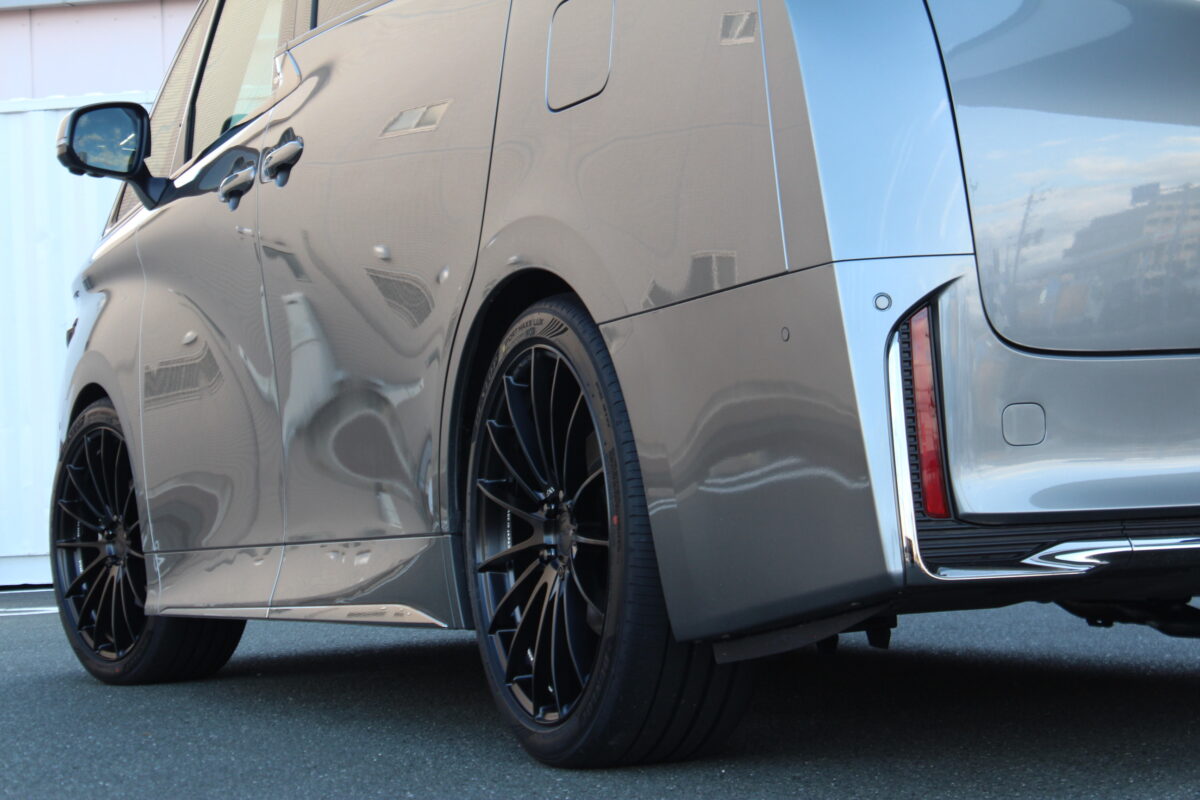 40系ヴェルファイアの重厚なボディに対し、あえて艶を抑えた「セミグロスブラック」をチョイスしたのは大正解ギラギラしすぎないマットな質感が、ボディのプレスラインや高級感を引き立てて、まさに「上品なスポーツスタイル」