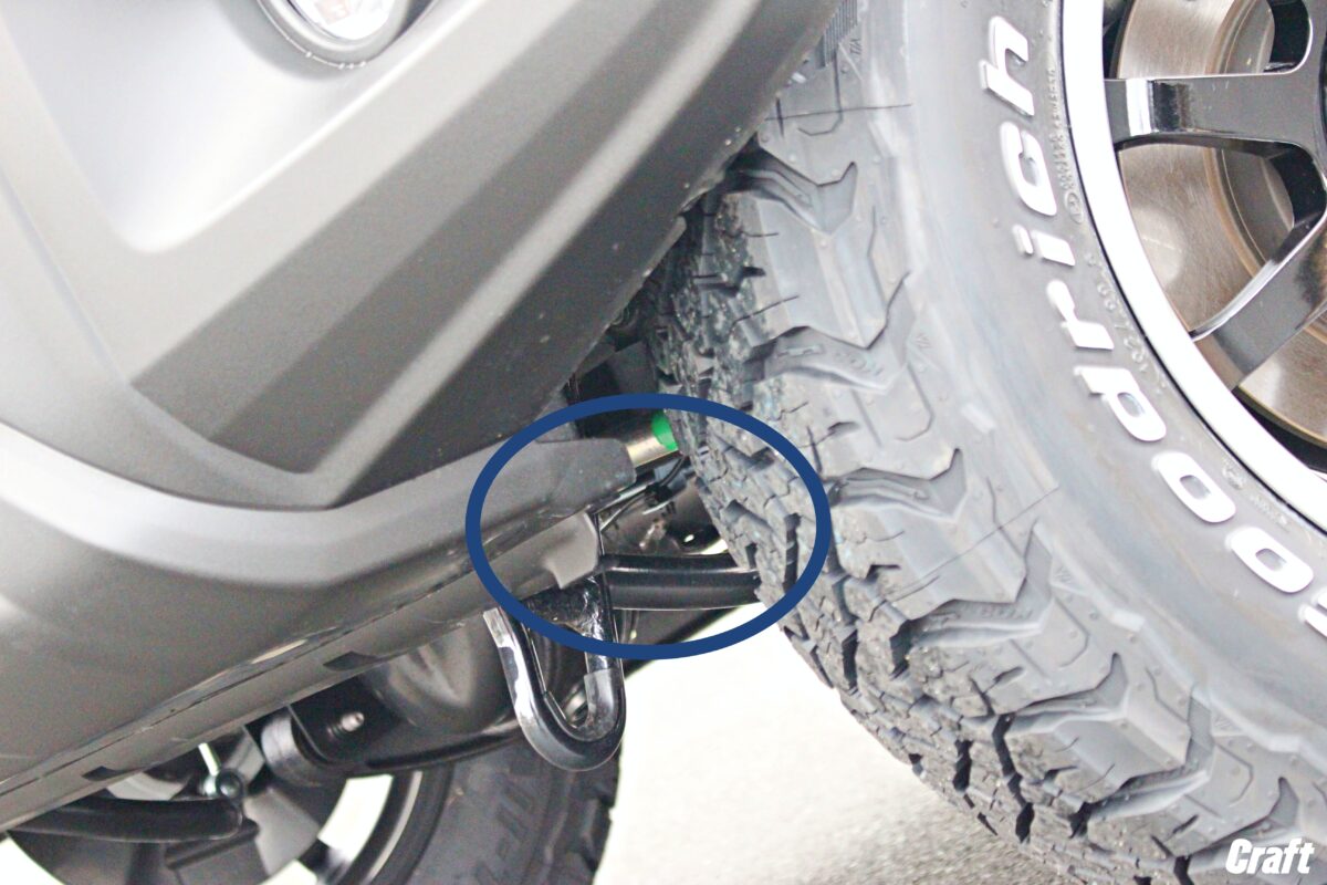 ノーマル車高のシエラに 225/70-16 を履かせるとバンパー下部にタイヤが干渉してしまうんですよね。。。