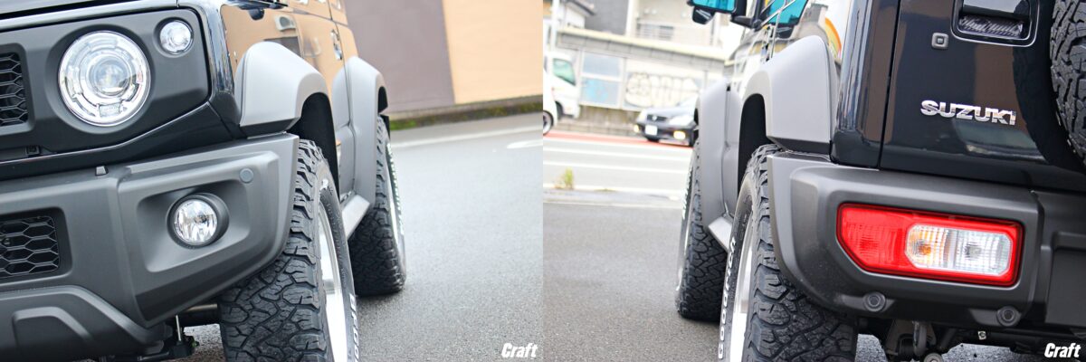ボディー本体はジムニーと同じですが、シエラやノマドはワイドフェンダー化されている事で選択肢がかな~り増える訳ですっ 👍
