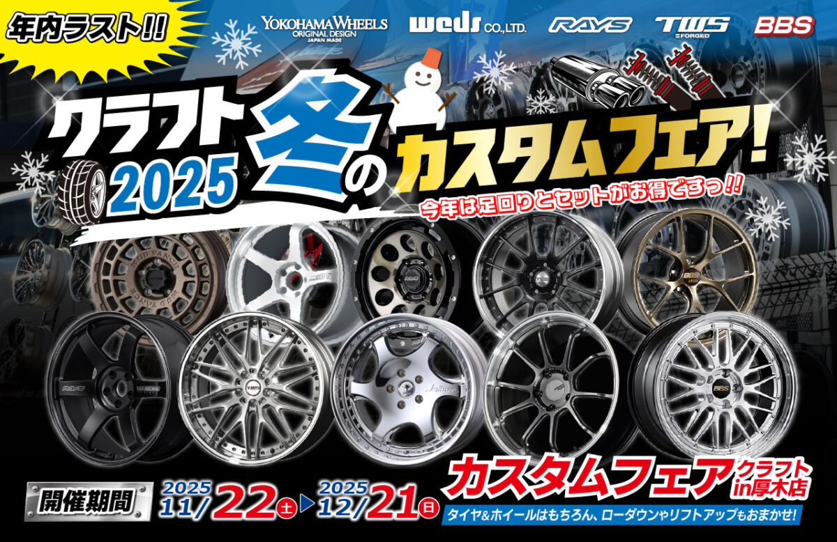 2025年11月22日(土)から開催しているクラフト冬のカスタムフェアーが本日合わせて残り2日間となりました!!