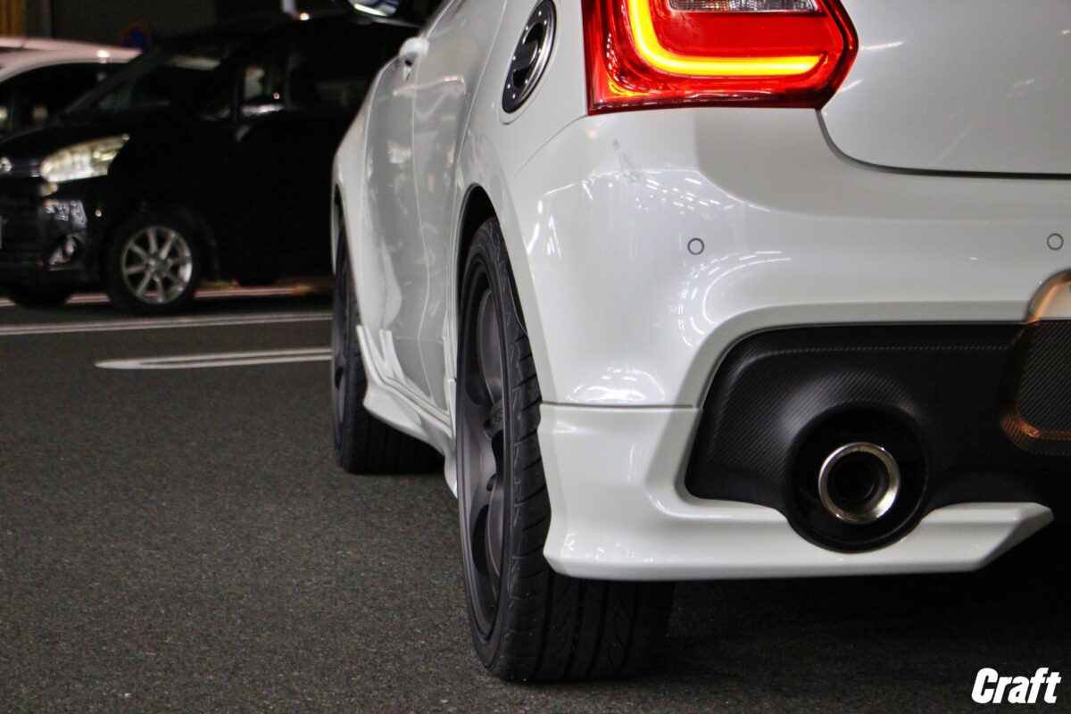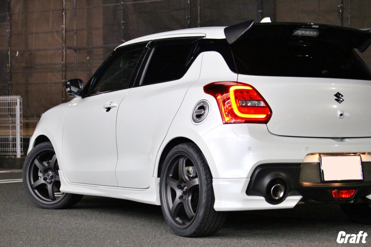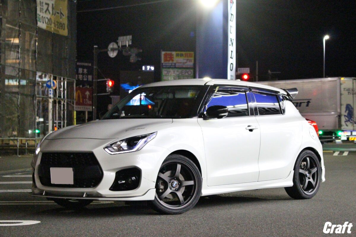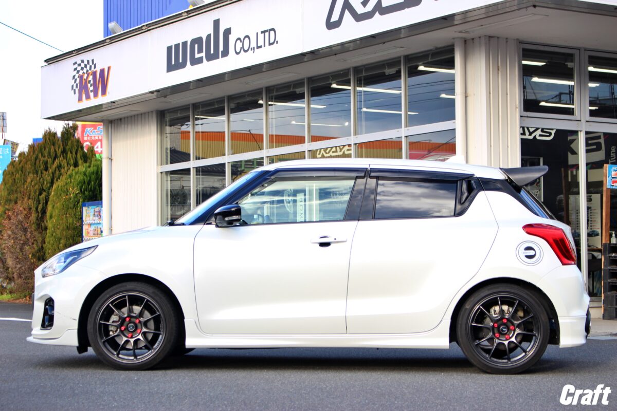 ■スイフトスポーツに18インチホイール!!出ヅラも見た目も更にかっこよく仕上がりましたよ!!   いつもありがとうございます!!クラフト厚木店・のりかずです!!   本日ご紹介するのはW様・スイフトスポーツです!   今回は18インチのホイールを装着していきます!!そして出ヅラにも拘って作っていきましたよ!!   では早速こちらをどうぞ!     パツパツな出ヅラに仕上がっていますよね!!   今回、取り付けたサイズは「7.5J-18インチ」となります!!   スイフトスポーツにとって「7.5J」は”チューナーサイズ”になってしまう事が多いです。   そして18インチを選択すると「7.5J」からのサイズラインナップしかない場合もあったりするんですよね。     W様・スイフトスポーツは上記の写真をご覧いただいてもわかる通り、すでに車高が下がっている状態。   なので、一作業を追加するれば先程のような出ヅラに仕上がります!     続いて今回ご購入頂いたホイールは”RAYS グラムライツ57CR スペックD”になります!!   レイズと聞くと納期がかかるイメージがありますが、なんと今回は4本だけメーカーにあったんですよね!!   ちなみに今からメーカーにオーダーすると4~5カ月待ちとの事です。。。しかも残り4台分の枠しかないとか。。。   気になっている方は早めに動くといいですね!!   4~5カ月となるとスタッドレスから、夏タイヤへ交換する時期なのでちょうどいいかもしれませんね♪     以前装着されていたホイールは17インチでしたが、今回は18インチへの仕様変更。   18インチへ仕様変更したのには「一度は装着してみたかった」と言う気持ちと18インチに憧れがあったからとの事。   カスタムをする時はそういった気持ちって大事な気がしますよね✨✨     今回はキャンバーボルトを装着し、アライメント調整にて出ヅラを調整しながら仕上げました!!   ちなみにキャンバー調整が可能なピロアッパーマウントが付いている車高調が装着されていれば、キャンバーボルトは不要なので、アライメント調整だけで仕上げることができますよ!!   なので、車高調でローダウンを考えているオーナー様はキャンバー調整ができる車高調を選ぶとホイールの選択肢が広がります!!     出ヅラに拘って作るとより満足度も上がります!!   出ヅラに拘って愛車をかっこよく仕上げてみませんか!!   それではご相談お待ちしておりまーす!!     W様この度はクラフトをご利用いただきありがとうございました!!   ホイールがメーカーに在庫があって最高でしたね✨✨   実際18インチを装着してみていかがでしょうか??   見た目も出ヅラもかっこいい愛車に仕上がっていますよね♪   それではまたのご相談お待ちしております!!   管理番号:0412512261004