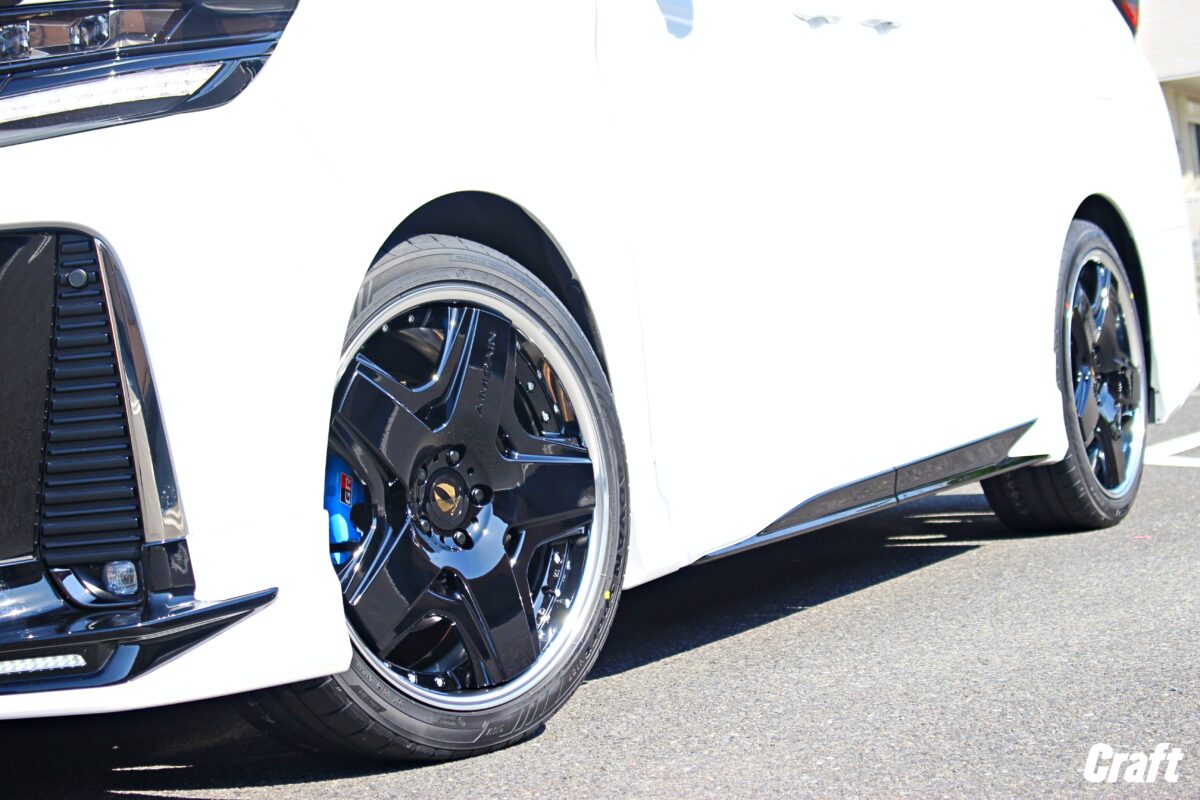 40アルファード・ヴェルファイアはローダウンを行うとキャンバー角に変化が生まれる車輛ですが、この出ヅラに仕上がっていれば今後ローダウンを行ったとしてもそのまま装着する事も出来ますよねっ 👍