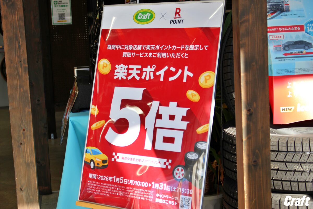 1月はクラフトで買取・下取りをご利用すると楽天ポイントが5倍。   明けましておめでとう御座います。 クラフト一宮店です。 本年も当店を宜しくお願い致します。   早速ですが本日よりアルミホイールの買取・下取り時に、 付与させていただく楽天ポイントが「5倍」となります。     通常なら「買取・下取り価格が200円→1ポイント」ですが、 キャンペーン期間中は「200円→5ポイント」の大幅UPとなっています。 ※特典付与上限は2,000ポイント。   とってもお得にご不要なアルミホイールセットが 買取・下取り出来ますので 是非この機会にクラフト一宮店までお越しください。     もちろんアルミホイールが付いていれば 買取・下取り可能です。     傷が付いていても、曲がっていても、 タイヤがどんな状態でも大歓迎ですので 是非この機会にクラフト一宮店まで。   それではまた次回のブログもお楽しみに。 クラフト一宮店でした。