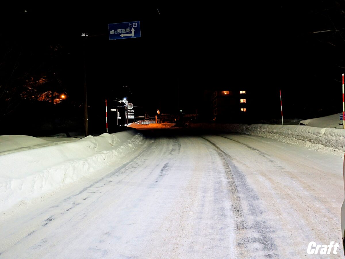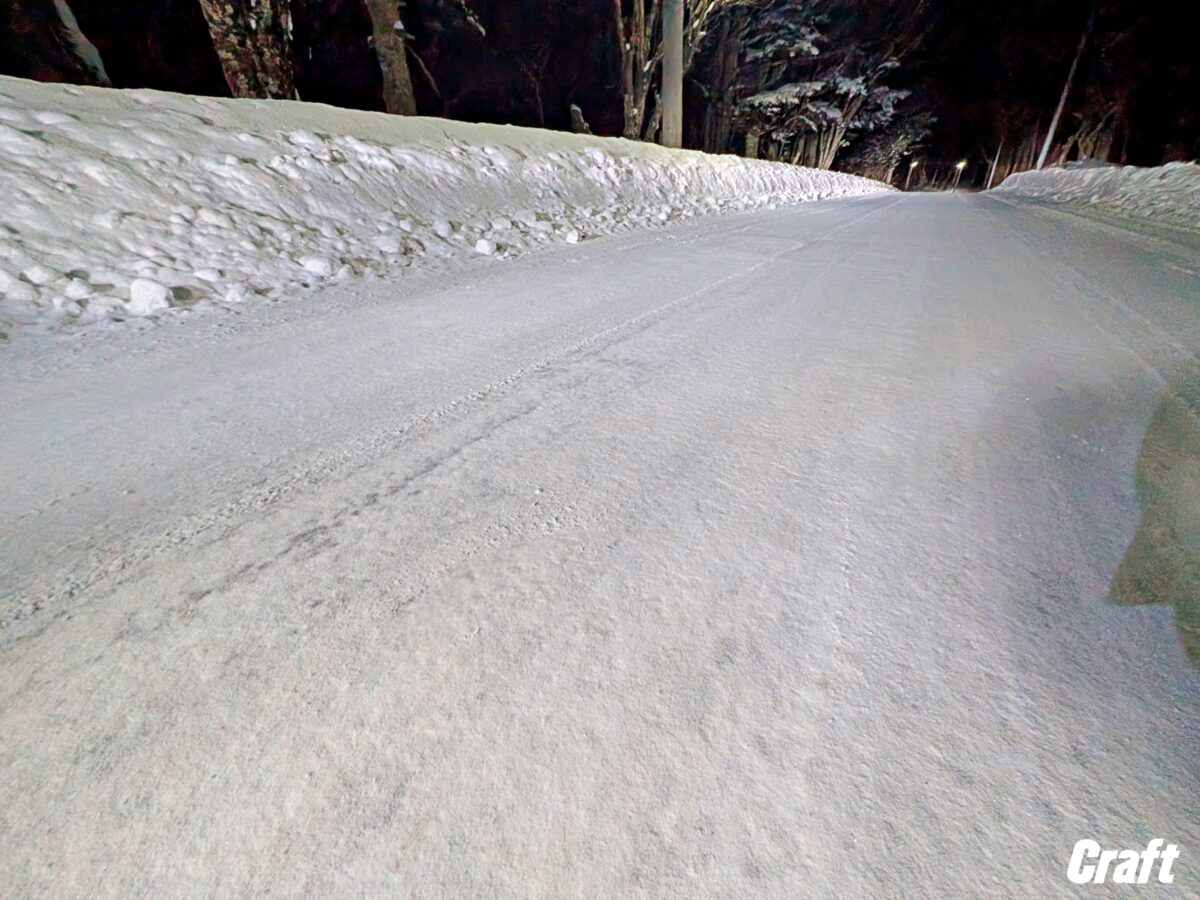 そして標高が上がるにつれて気温は下がり、路面状況は 「 シャーベット 」 から 「 圧雪路 」 、そして 「 凍結路面 」 へと刻一刻と変化していきます。