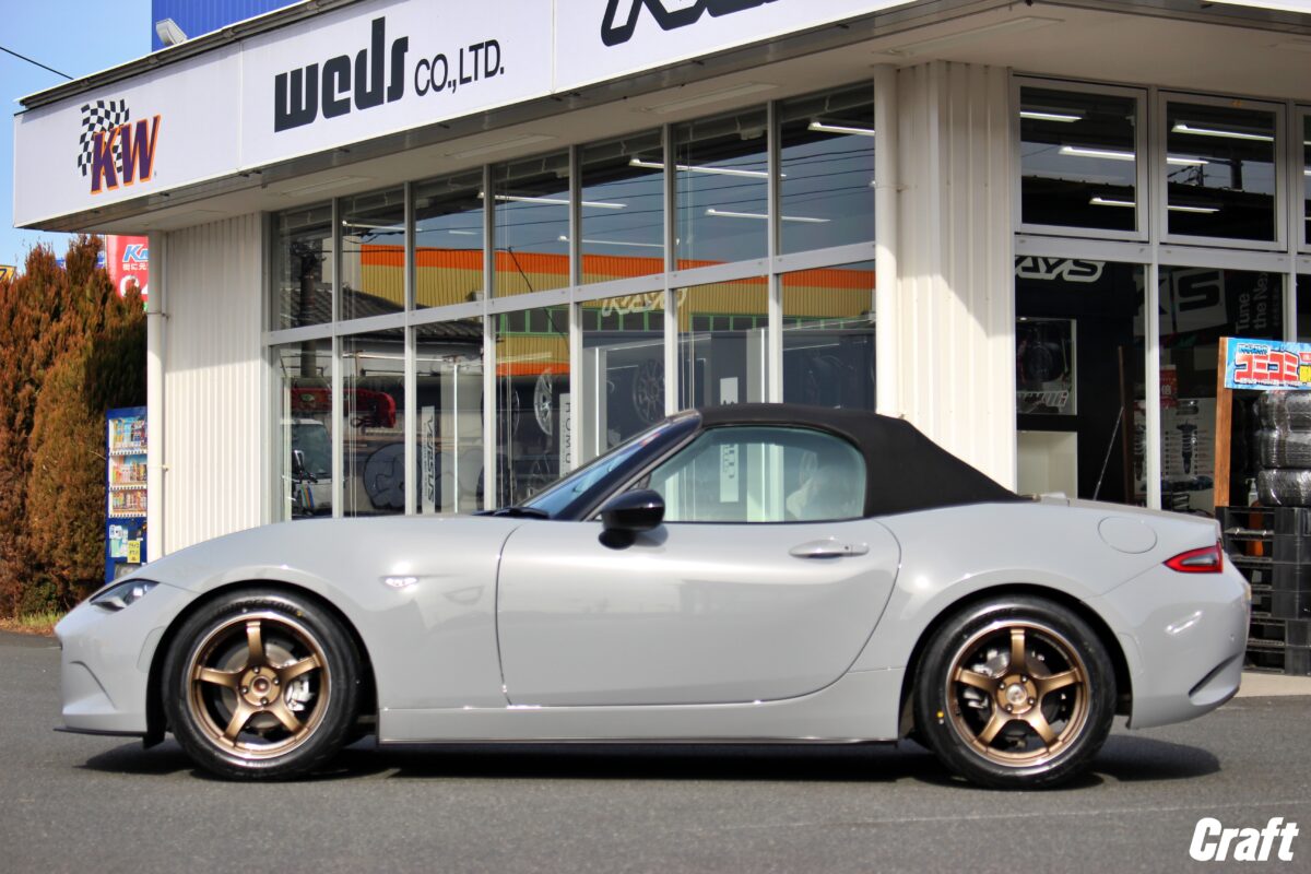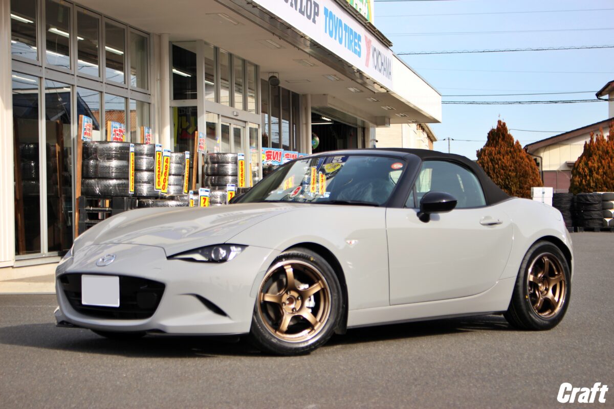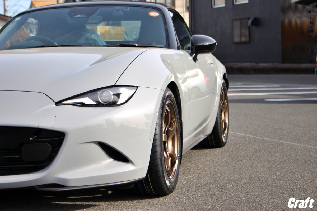 いつもありがとうございます!!クラフト厚木店・のりかずです。   本日ご紹介するのはY様・NDロードスター。   以前、当店で車高調の取り付けをさせていただき、今回はタイヤ・ホイールの交換!! ※車高調の取り付けをしたブログはこちらから↓ 【NDロードスター】30~35mm程のローダウンはこんな感じに仕上がりますよ~   やっと入荷してきたあのホイール。NDロードスターに大人気なホイールを取り付けていきます!     ご注文いただいたホイールは「レイズ グラムライツ 57トランセンド」   クラフトで多く取り付け事例があるこのホイール。   デザインがかっこよく、なんといってもコンケイブが深い!!これが欲しくなる理由1つではないでしょうか!   また、出ヅラもパツパツのツライチ!かっこよすぎます。。。     出ヅラはこんな感じ↑   以前、車高調を取り付けた際にセッティングは完了しているので、本日はタイヤ・ホイールの交換のみで完了!   にしても出ヅラいい感じですね~   あいにくの雨で少し見づらい気もしますが、「水も滴るいい出ヅラ」という事で許してください(笑)     前から見る出ヅラも良きです✨   今回のタイヤサイズは205/40-17、引っ張り仕様での仕上がりです!     実は57トランセンドって廃盤になる予定だったのが人気がありすぎて今も何とか続いているモデルなんですよね。   なので急に廃盤になる可能性があるので気になっている方早めにご相談くださいね~     Y様・この度はクラフトをご利用いただきありがとうございました!!   ホイールの入荷が思っていたよりも早く入ってきてくれてよかったです!   コンケイブ・出ヅラはいかがだったでしょうか!   見惚れてしまったのではないでしょうか(笑)   また、クラフトをご利用くださいね♪   管理番号:0412508101002