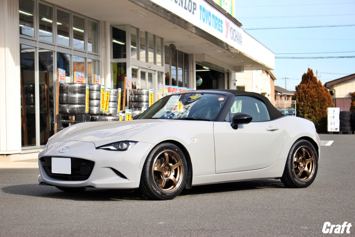 ■NDロードスター × ADVAN Racing TC-4   いつもありがとうございます!!クラフト厚木店・のりかずです!   本日ご紹介するのはS様・NDロードスターのタイヤ・ホイール交換!!   今回ご購入いただいたのはこちら↓     ”YOKOHAMA ADVAN Racing TC-4”   伝統の5本スポークを現代風に昇華したレーシングデザイン。   NDロードスターにこの5本スポークもしくは6本スポークは、まさに「鉄板」の相性。   スポークをリムの端まで伸ばすことで、1サイズ大きく見える迫力のシルエット、そして鋳造でありながら、アドバン独自の流動成形(フローフォーミング)技術により、驚くほどの軽さを誇ります。   このホイールを履くだけでも、足元が一気にレーシーで引き締まった印象に変わります!!   続いてご購入いただいたタイヤはこちら↓     ”BRIDGESTONE POTENZA Adrenalin RE004”   「せっかくのロードスターなら、タイヤにもこだわりたい。でも街乗りも快適に楽しみたい」そんな方に最適なのが、このAdrenalin RE004です。   ステアリングを切った瞬間の反応が鋭く、ワインディングが楽しくなります。またスポーツタイヤながら排水性も考慮されており、雨の日のドライブも安心設計!!   トレッドパターンがカッコよく、TC-4のデザインをさらに引き立ててくれますよね♪     装着後、一気に「戦闘力」が高まった姿にオーナー様も大満足。   バネ下重量が軽量化されたことで、NDロードスター本来の持ち味である「ヒラリヒラリと舞うようなハンドリング」がさらに研ぎ澄まされていることでしょう👍     今回のクルマは以前当店で足回り交換作業をさせていただいた1台。   その際に装着するホイールサイズ等は決まっていたので、それに合わせたセッティングを先にさせていただきました。     なので出ヅラもこのようにビシっと決まっています👍     ホイール選びでクルマの印象は大きく変わります。   今回のTC-4は、スポーティーさとエレガントさがあり、皆様からにもよくご相談をいただくホイールの1つ。   「自分の車にはどのサイズが合う?」「ツライチにこだわりたい!」などのご相談はぜひクラフトへ👀   それではご来店お待ちしておりま~す🌞     S様この度はクラフトをご利用いただきありがとうございました!!   納期がかかると予想されていたホイールがこんなにも早く入荷してくれてうれしい限りです!!   そして出ヅラもちょうどよく仕上がってくれたのではないでしょうか!!   また、クルマのカスタムやタイヤ交換等の際はクラフトをご利用くださいね✨   それでは、Carライフを楽しんでください!!   管理番号:0412601261003