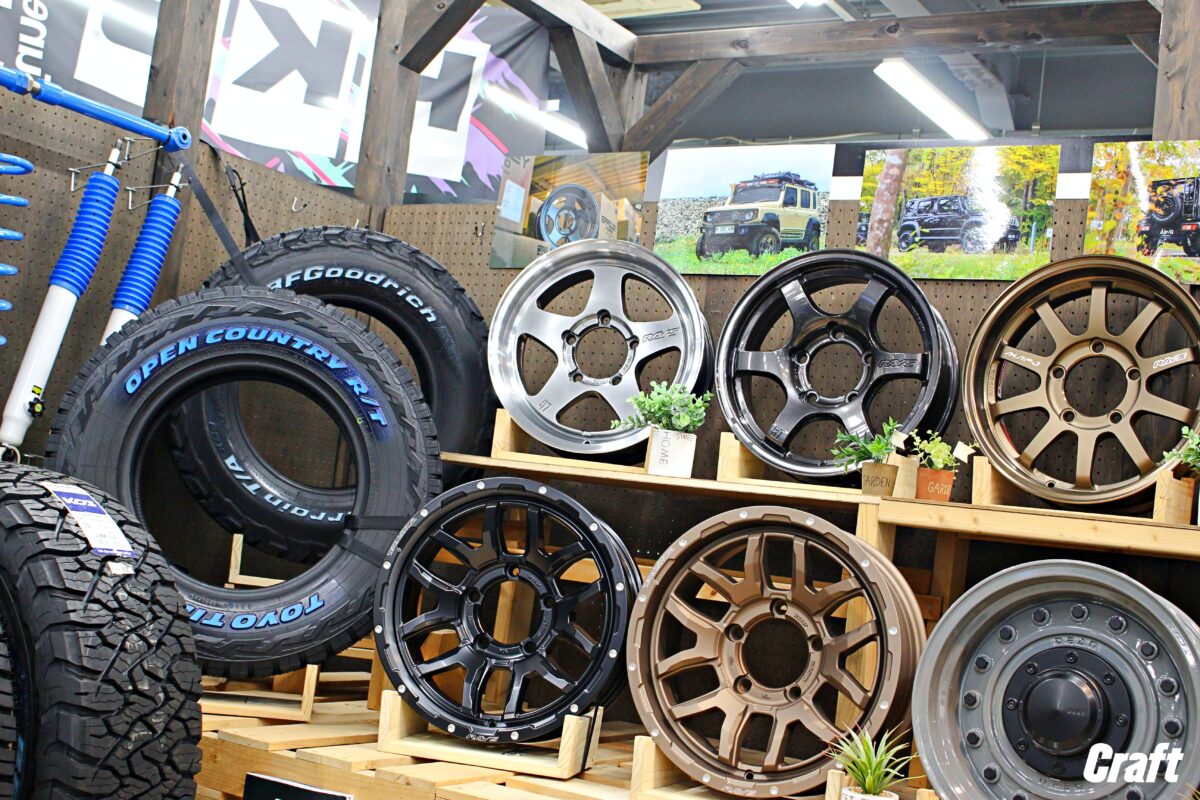 ジムニーシエラ・ジムニーノマド用コーナー設置。 人気のアイテム多数在庫アリです 👍     いつもありがとうございます、クラフト厚木店・佐藤です!!   本日は当店に新たに登場した 「 ジムニーシエラ・ノマドコーナー 」 についてのご紹介となりま~す✨   クラフト厚木店とは 「 シャコタン・ツライチカスタム 」 と 「 アゲアゲ・オフカスタム 」 の2つのジャンルを得意とするお店。   この2つの相反するカスタムですが、カッコ良くバシッとキメるにはどちらも専門的な知識を要する訳です。   カスタムが好きな皆様はクラフトブログを良くご覧いただいていると思いますが、屋号が2つあるのはご存じでしょうか!?   1つは通常の クラフト となり、もう1つは アーバンオフクラフト となります。   本日ご紹介する 「 ジムニーシエラ・ノマド用コーナー 」 が設置されるお店はどちらかと言えば アーバンオフクラフト の店舗かも知れません。   ちなみに、当店の屋号は通常のクラフト。     ですが、当店ではヨンク系車輛のご相談もとても多く、いわば二刀流の店舗なんですよね。。。   ちなみに、この2つのジャンルにしっかり対応する為には色々な知識や経験が必要となります。   ですが、皆様からの多くのご相談により様々なデータが累積しており、それが店頭でのご案内に役立っているんですっ 👍   そしてここ最近ご相談が多くなっているのが 「 ジムニーシエラ・ノマド 」 です!!   そんな訳で厚木店のヨンクコーナーに ” シエラ・ノマド ” コーナーを作っちゃいましたっ ✨     展示コーナー左側には オープンカントリーRT & BFグッドリッチ KO3 を展示。   サイズは 「 225/70-16 」 となり、ノーマル車高での限界サイズを展示中 👍   実物を見るとけっこうな迫力なんですよぉ~✨     ホイールの展示では人気のRAYSやクリムソンのDEANシリーズ。   そしてWORKさんの新作 マイスター L1 SUV も展示中!!   納期が掛かりやすいRAYSホイールも在庫アリで即日取付けにも対応出来ますよぉ~ 👍   そして、カッコ良く仕上げるために重要となるのが タイヤサイズ 選び。     上の画像の中央にあるのがシエラ・ノマドの純正装着タイヤ。   サイズは 195/80-15 となります。   その横に並んでいるタイヤサイズは 235/75-15 となります!!   太さも違えばトレッドパターンも違い、迫力も全然違いますよねっ✨   こんなに太いタイヤが装着出来るの?? って、疑問に思ったオーナー様は店頭にてワタクシ佐藤までご相談下さ~い✋     これからシエラ・ノマドのカスタムをお考えのオーナー様はぜひ店頭にて各アイテムをご覧になってみて下さいね!!   そして、タイヤ・ホイール交換やリフトアップ作業もぜひぜひお任せ下さい 👍   それでは皆様からの沢山のご相談お待ちしておりま~す☆☆