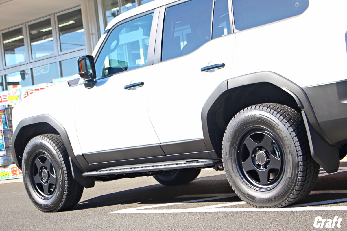 納車間もないおクルマなので、純正タイヤ・ホイールを装着しているT様・ランクル ニーゴーマル。