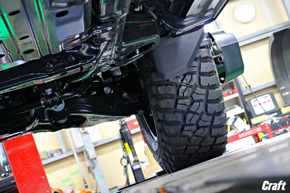 ですが、リフトアップ量に合わせてタイヤサイズを大きくしているからこそ、ここまでバランス良く仕上がって見える訳です 👍