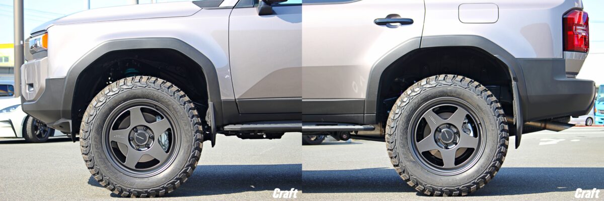 本日ご紹介のランクル250はワイドフェンダー化されておりませんので、装着出来るタイヤサイズはこのサイズが目一杯サイズ。