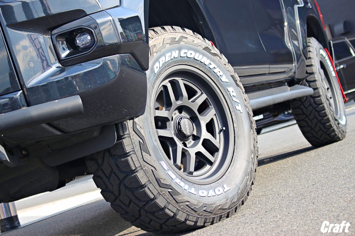 ステルスブロンズブラッシュドとジオランダー A/T4 の組み合わせ。 アウトラインホワイトレターがちょうど良い 👍     いつもありがとうございます、クラフト厚木店・佐藤です!!   本日のご紹介はM様・HILUX GRスポーツ。   TOYOTAのヨンク系って強いですね。。。   っと、言うのもココ数年、150プラドから始まり、HILUXやRAV4のカスタムを多く行っています!!   そしてココ最近ではランクル250やランクル70(GDJ76W)も増えてきており、ヨンク時代が到来しているのか??って思う程ヨンク系オーナー様からのご相談が増えています。   そんな訳で本日もHILUXのカスタムブログをお楽しみくださ~い♬♬     装着しているホイールは 「 4×4エンジニアリング Air/G ロックス 17インチ 」 となります!!   ハイラックスが装着するホイールはどのアイテムを選んでもコンケイブが効いたモデルが多いと思います。   その理由はインセットの設定にあります。     こうして見ても、なかなかのコンケイブスタイルですよね!?   Air/G ロックスには6つのFACEが設定されており、本日装着しているホイールはFACE5となっています。   ちなみに、コンケイブが強まるのは 1 → 2 → 3 と言った様に、数字が大きくなればなる程コンケイブが増す仕組み。   なので、FACE5と言うのは最大コンケイブの1つ手前と言う事。     ちなみに、HILUX GR はワイドフェンダー化されたおクルマ。   なので、インセット±0 (FACE7) 位の設定があったら更にカッコ良く仕上げられるんですけどね 👀   残念ながらそんな熱~いサイズ設定はありませんでした。。。笑     そんなAir/G ロックス に組み合せたタイヤは 「 ヨコハマタイヤ ジオランダー A/T 4 」   タイヤサイズは 265/70-17 となります!!   150プラドと違い、HILUXはタイヤを大きくするのが本当にムズカシイ車。     本日はタイヤ・ホイール交換と同時にフロントのリフトアップを行いました。   お気付きだとは思いますが、リフトアップをする理由は 「 タイヤ外径を大きくしたタイヤ 」 を装着する為!!   オーナー様がご希望されていたタイヤサイズは 265/70-17 となり、純正装着タイヤより1サイズ大きなサイズ。   ですが、HILUXの場合はそんな1サイズアップでも干渉問題が付きまとうんです。。。汗     本日のリフトアップアイテムは 「 JAOS リフトアップスプリング 」 となります。   車高調式(VFCA)の場合は大きくリフトアップ出来ますが、本日装着のリフトアップスプリングは1,5インチ程のリフトアップ量。   HILUXは車高をアゲればアゲるほど大きなタイヤを装着出来ます。   ちなみに、リフトアップ量が1,5インチ程の場合は 265/70-17 が限界でしょうね。。。   作業終了後に干渉の有無をチェックしましたが、問題なく無事に装着出来ていましたよぉ~ 👍   貴方の愛車はどんな仕上がりがご希望でしょうか?? ご相談お待ちしておりま~す♬♬     M様、この度はご利用誠にありがとうございました!!   前下がりスタイルがしっかり補正され、そして足元を支えるタイヤ・ホイールも迫力UP出来ましたねっ✨   カッコ良く仕上がった愛車は眺めているだけでも楽しいですよね。。。笑   もちろんカッコ良く仕上がった愛車でのドライブは格別、沢山お出掛けしてくださいねっ♬♬   それではまたのご利用よろしくお願いしま~す☆☆