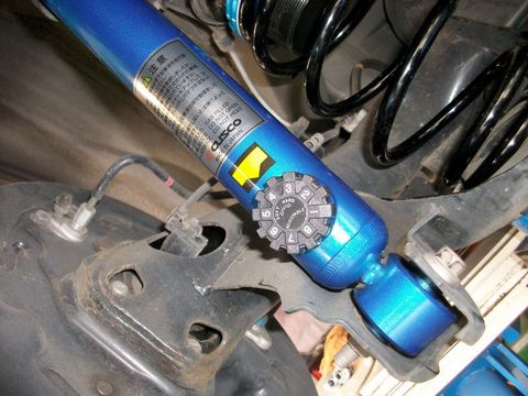リアの減衰力調整ダイヤルはココ(ショックの表面)にある為、