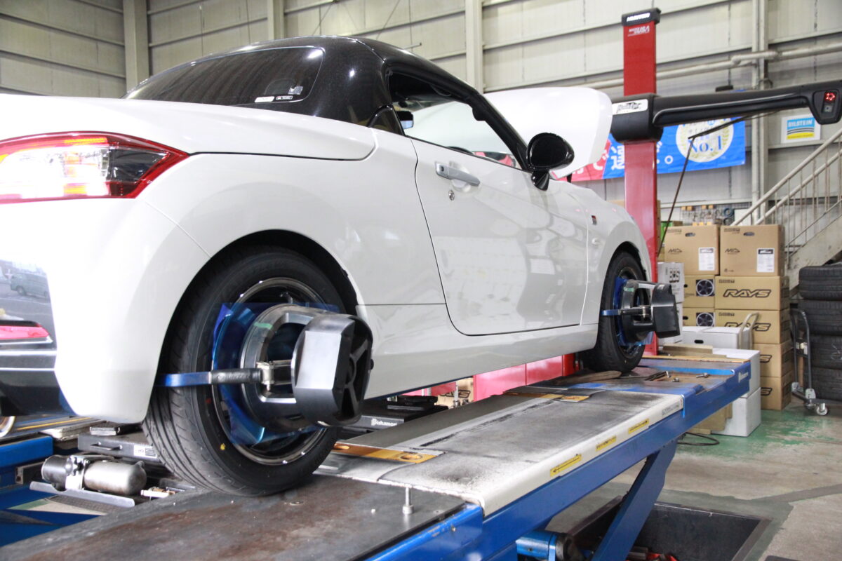フロントのキャンバーを調整しつつ、トゥの補正を行えば作業終了。