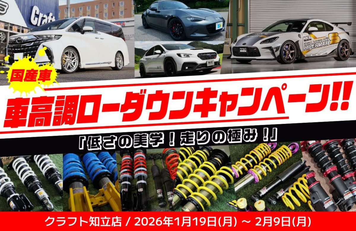 2026年1月19日から国産車両限定の車高調ローダウンキャンペーンを開催!