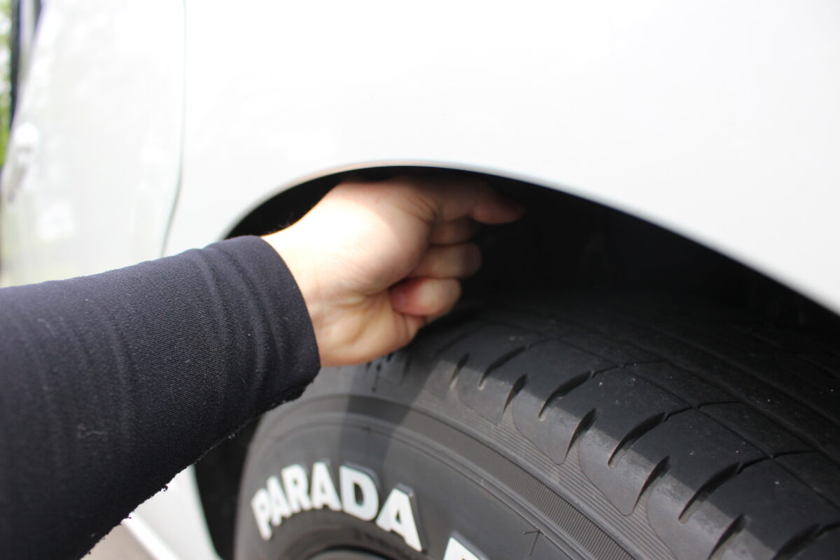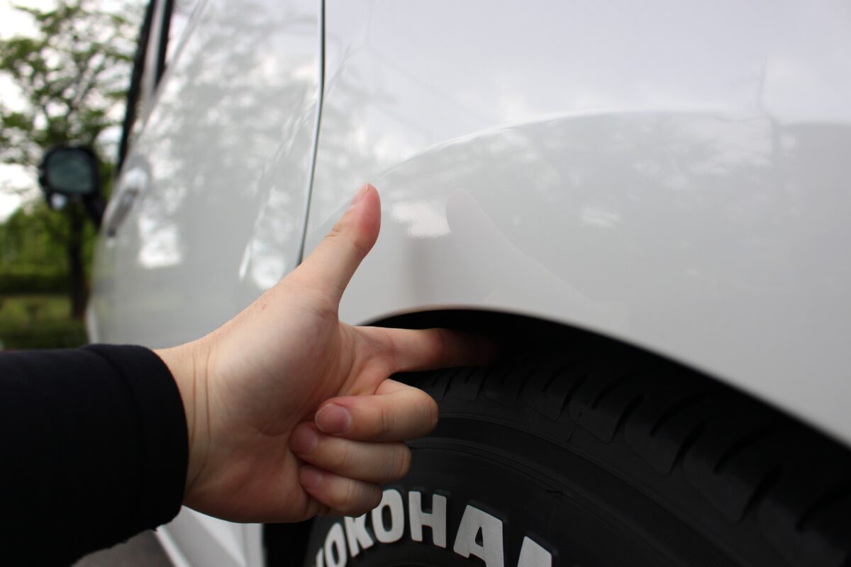 前後とも狙い通り、フェンダーとタイヤの隙間が指一本という、