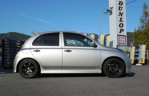 既にブリッツの車高調にてローダウン済みのマーチ12SRのドレスUPをさせて頂きました